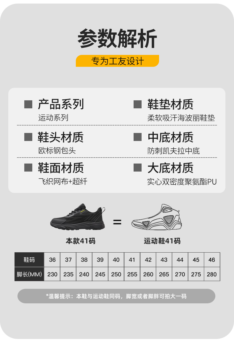 新品春季款实心底劳保鞋钢头防砸防刺穿工作耐磨舒适透气 商品图4