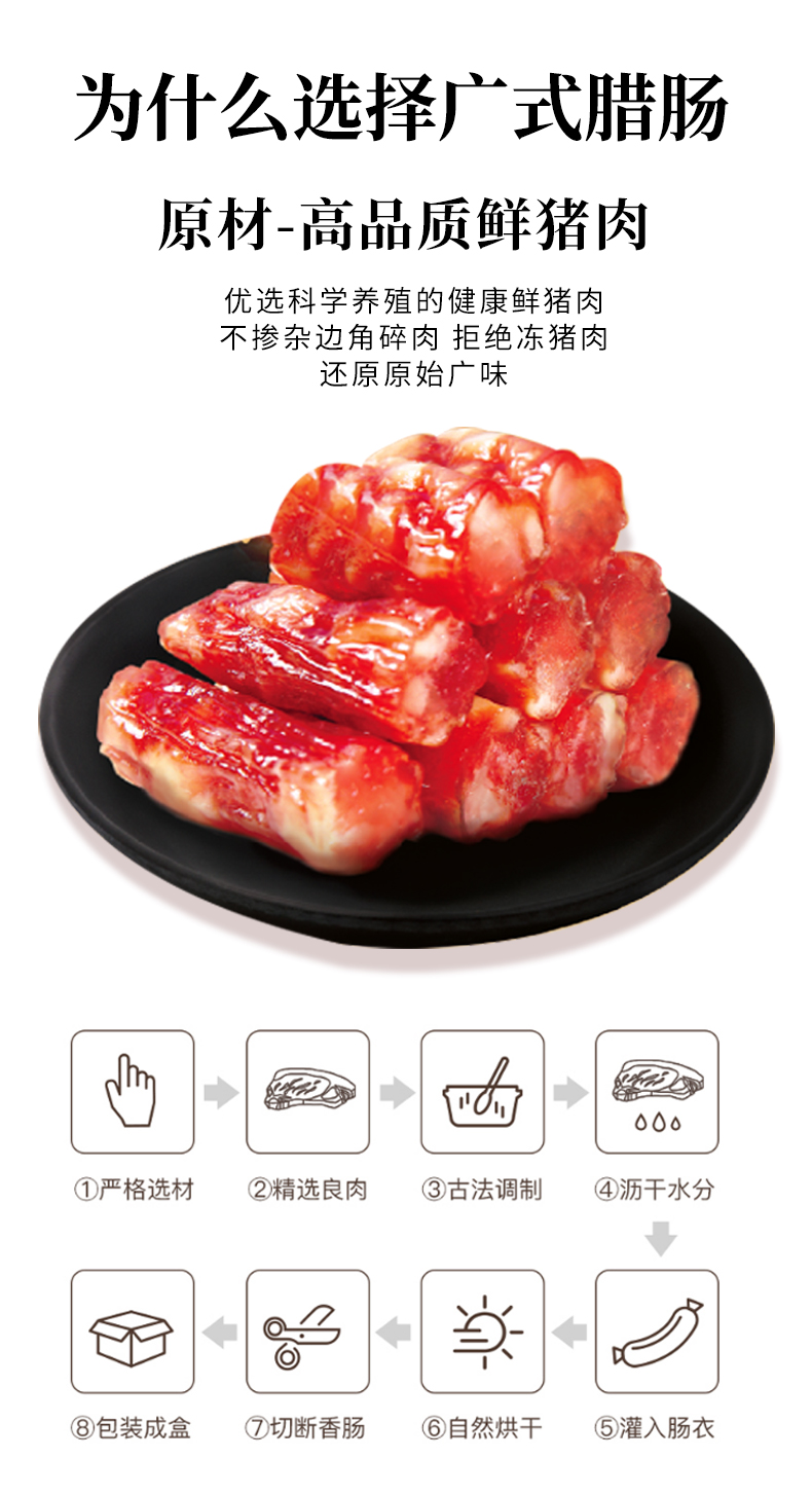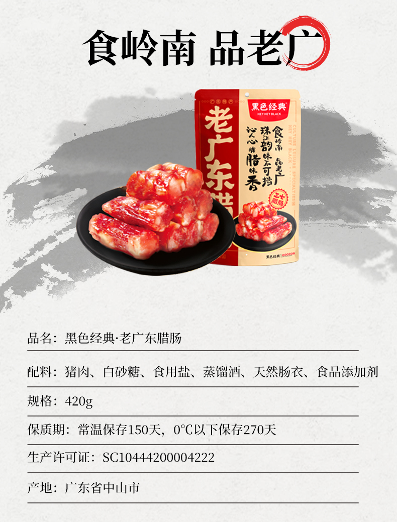 【会员特价局地包邮-2份装】黑色经典老广东腊肠420g/袋 保质期至2023/2/14 限量58份