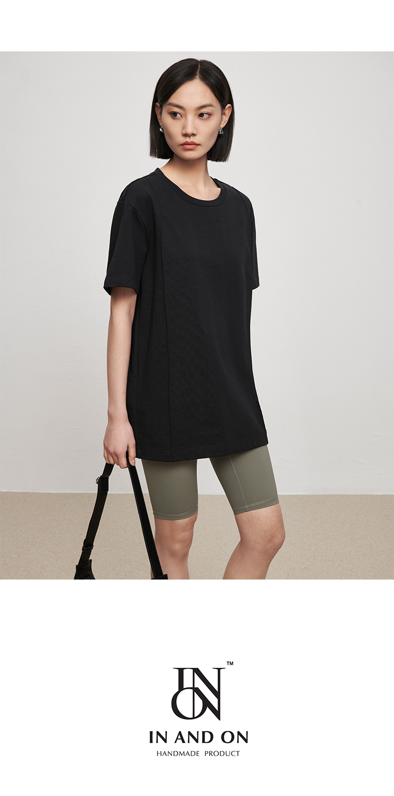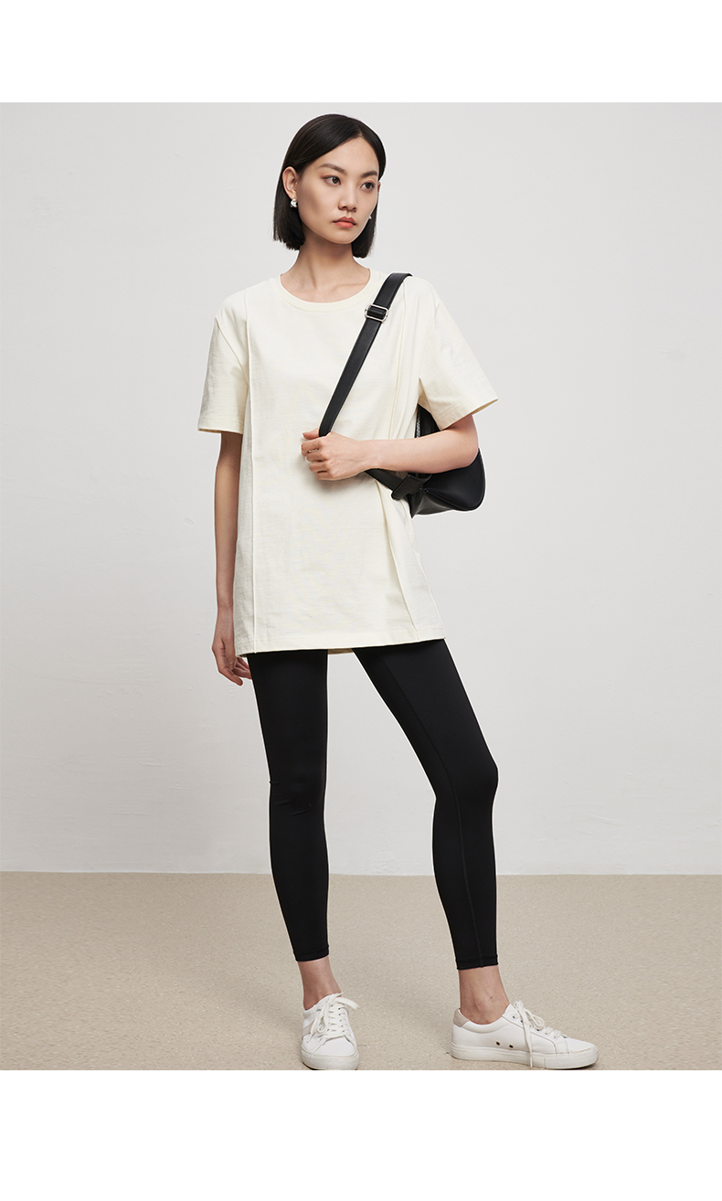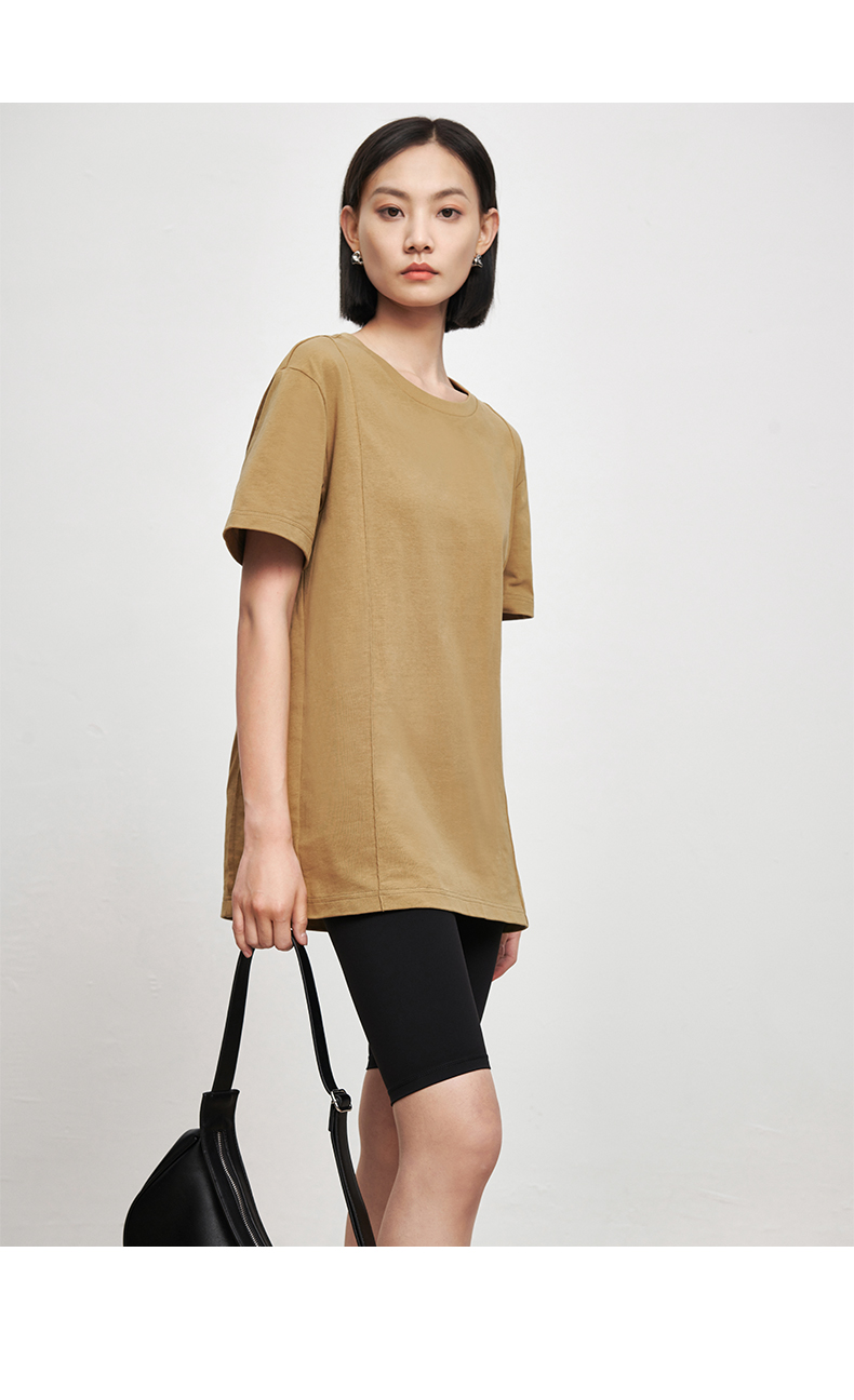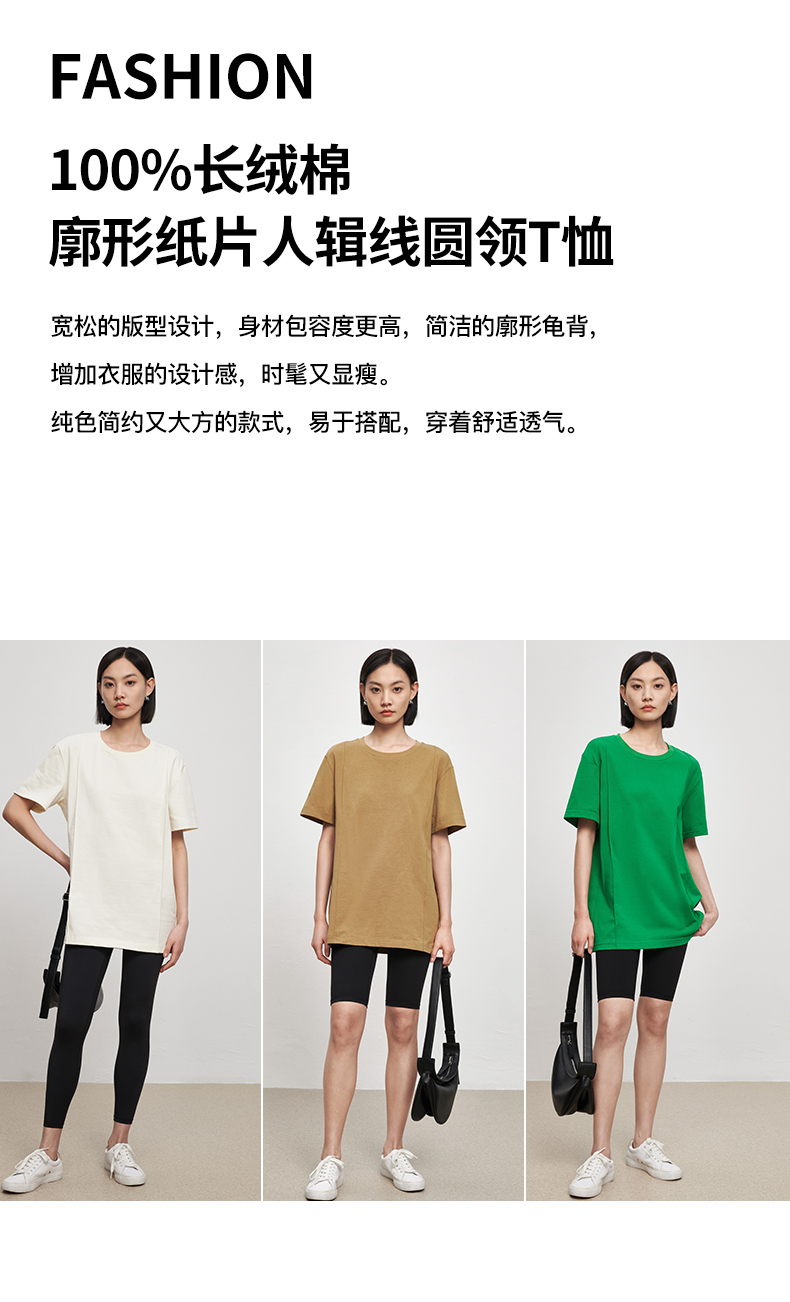 53243 IN AND ON 夏短袖女纯色t恤100%长绒棉宽松休闲廓形纸片人圆领上衣