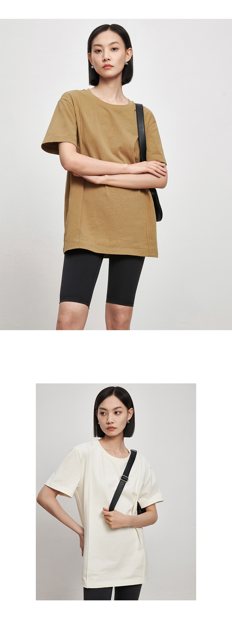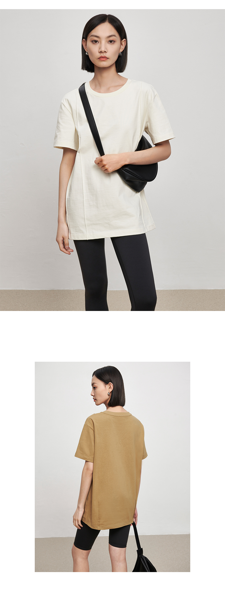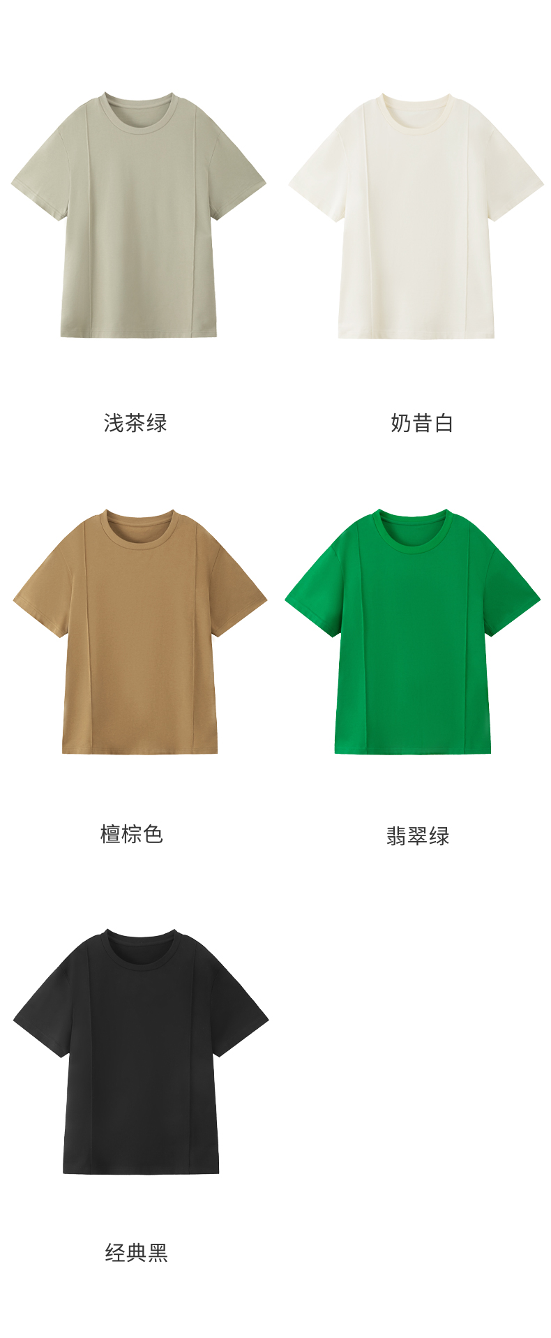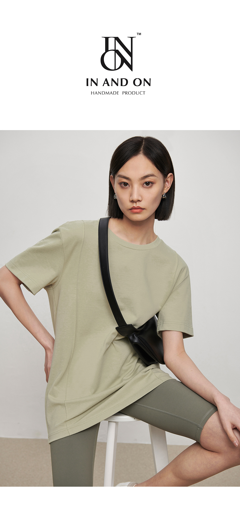 53243 IN AND ON 夏短袖女纯色t恤100%长绒棉宽松休闲廓形纸片人圆领上衣