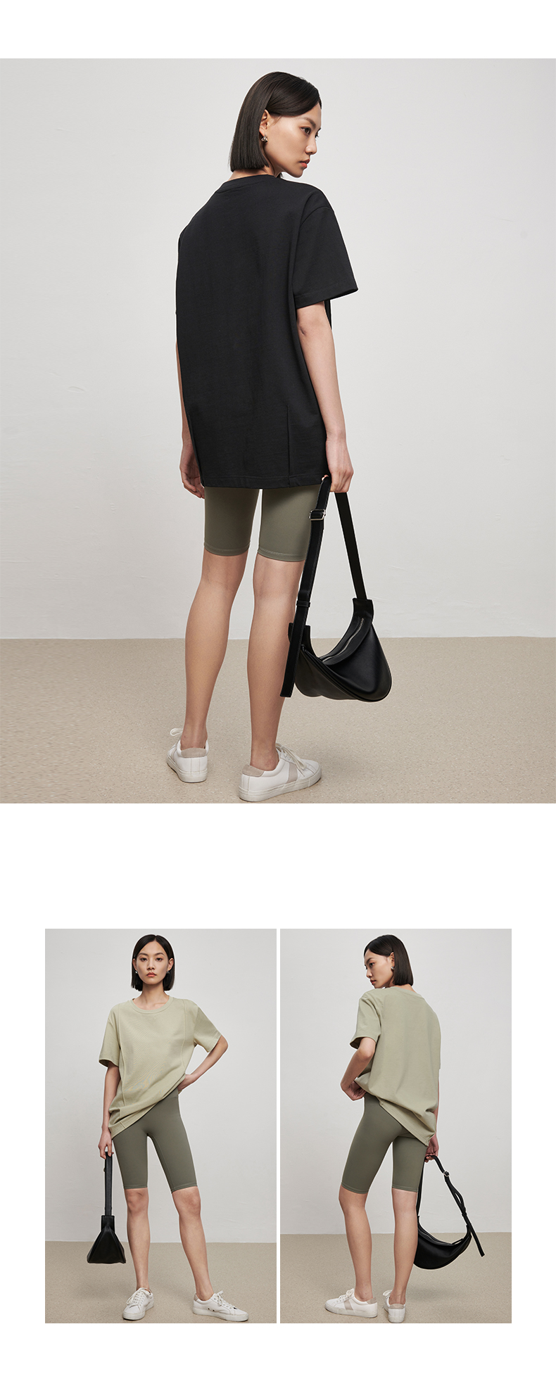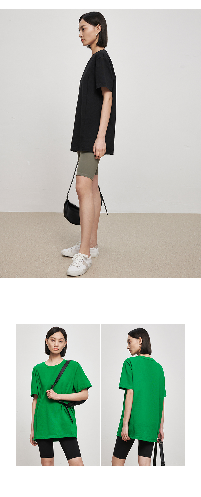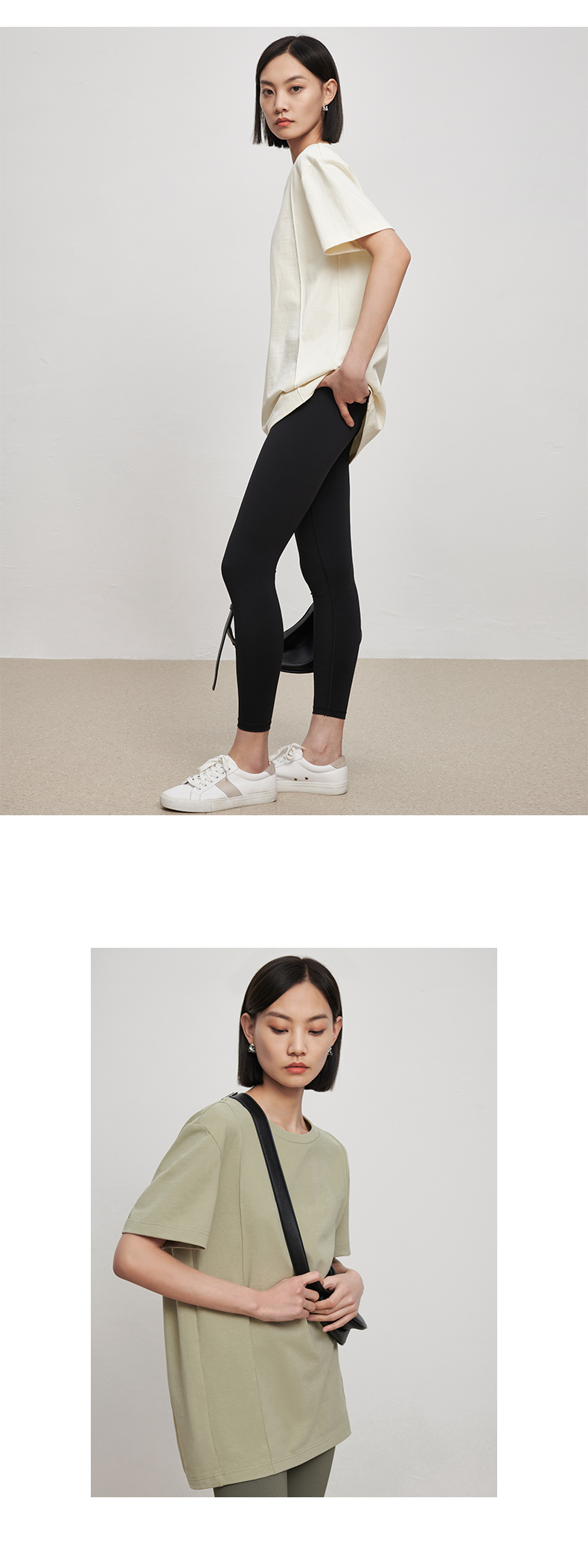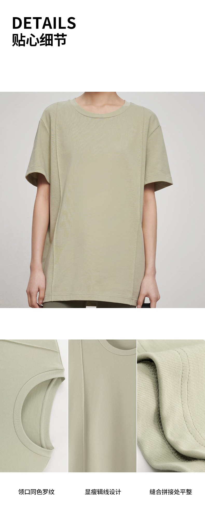 53243 IN AND ON 夏短袖女纯色t恤100%长绒棉宽松休闲廓形纸片人圆领上衣