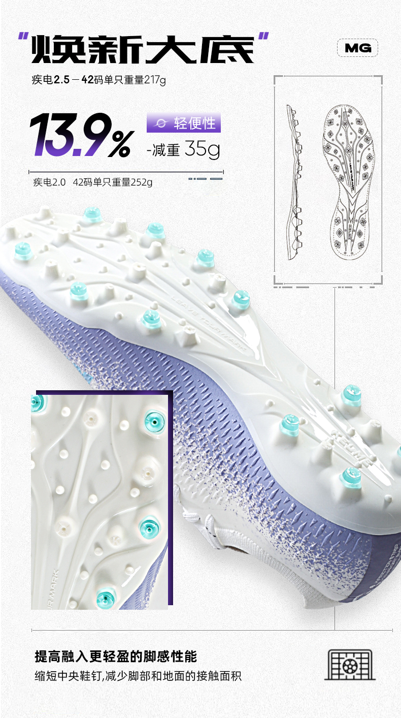 卡尔美2023疾电2.5轻盈男MG足球鞋