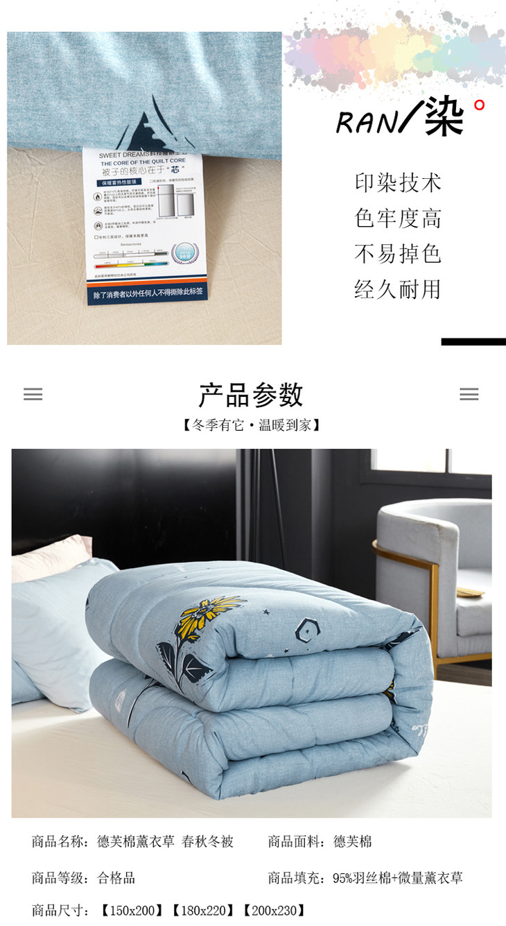 惠慈家居 德芙薰衣草被 羽丝棉薰衣草棉被 花香一室 150*200/200*230 两种规格可选