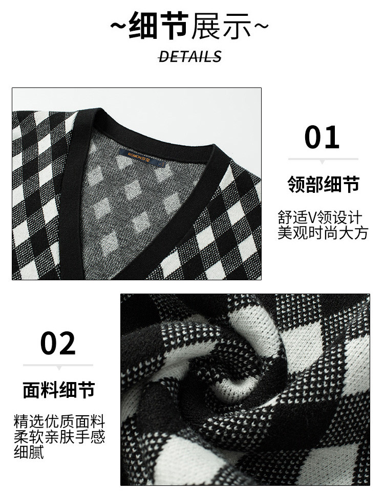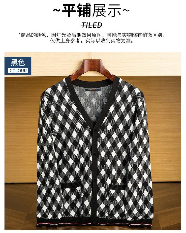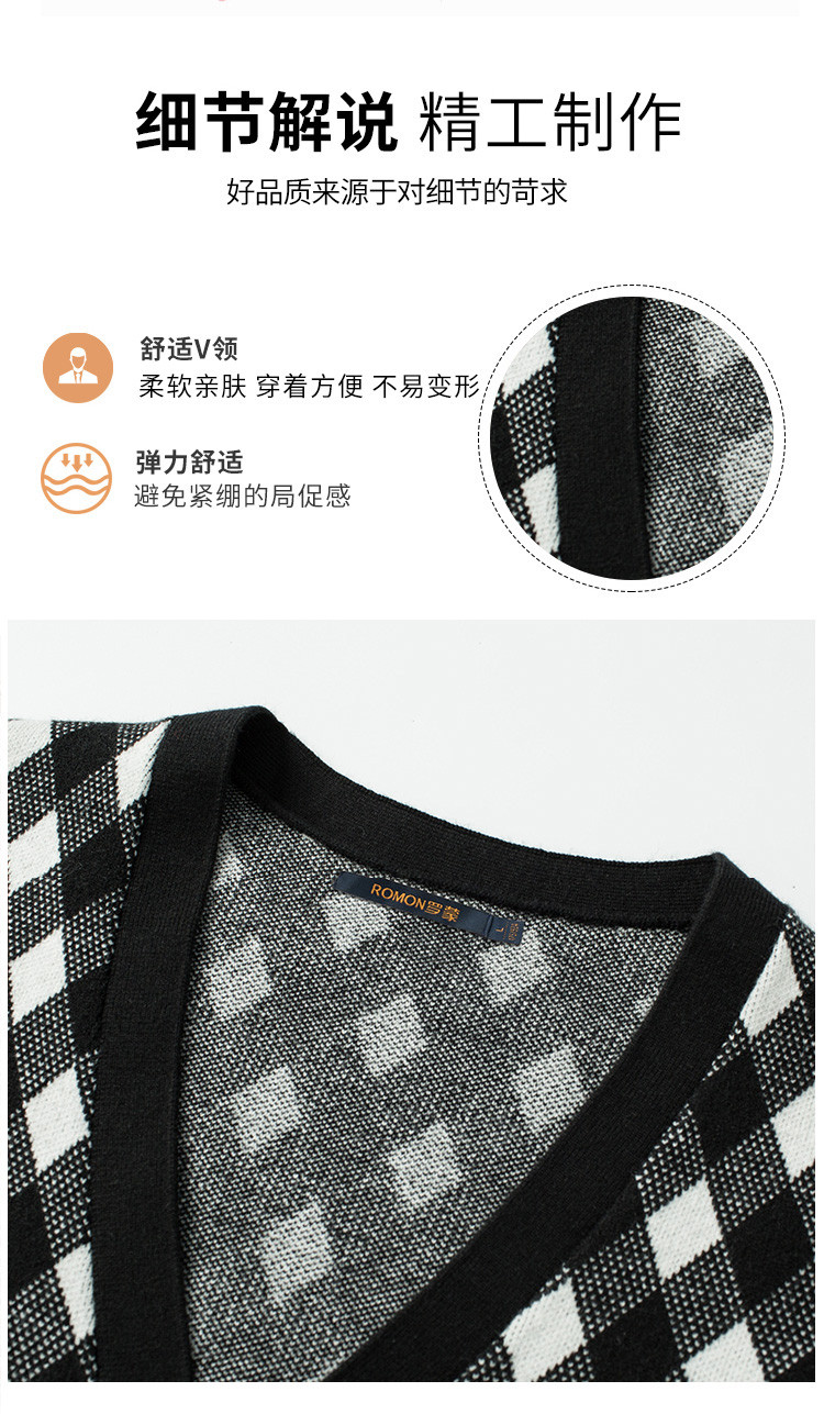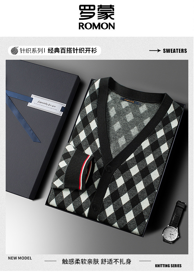 27DKCF2392【棋盘格】罗蒙经典爆款针织开衫男时尚百搭针织外套男舒适男式针织衫