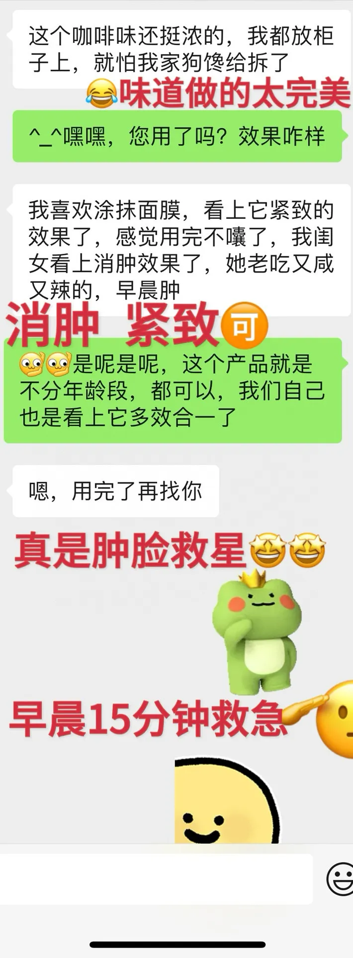 • 早上急救:刷牙前厚敷,洗漱完洗掉,浮肿消了,眼皮不耷拉了,上妆都服帖了!