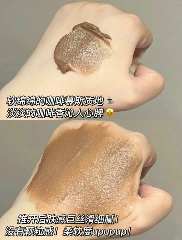 质地:像丝滑的咖啡奶霜,非常好推开,顺滑不黏腻。