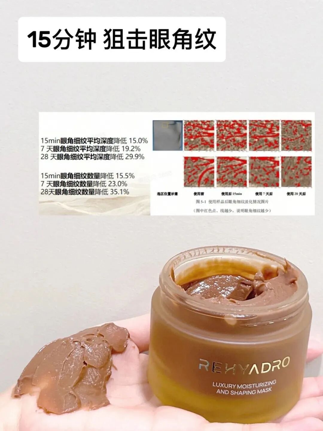 📈 敷后15分钟,眼角细纹平均深度下降15% —— 淡纹看得见!
