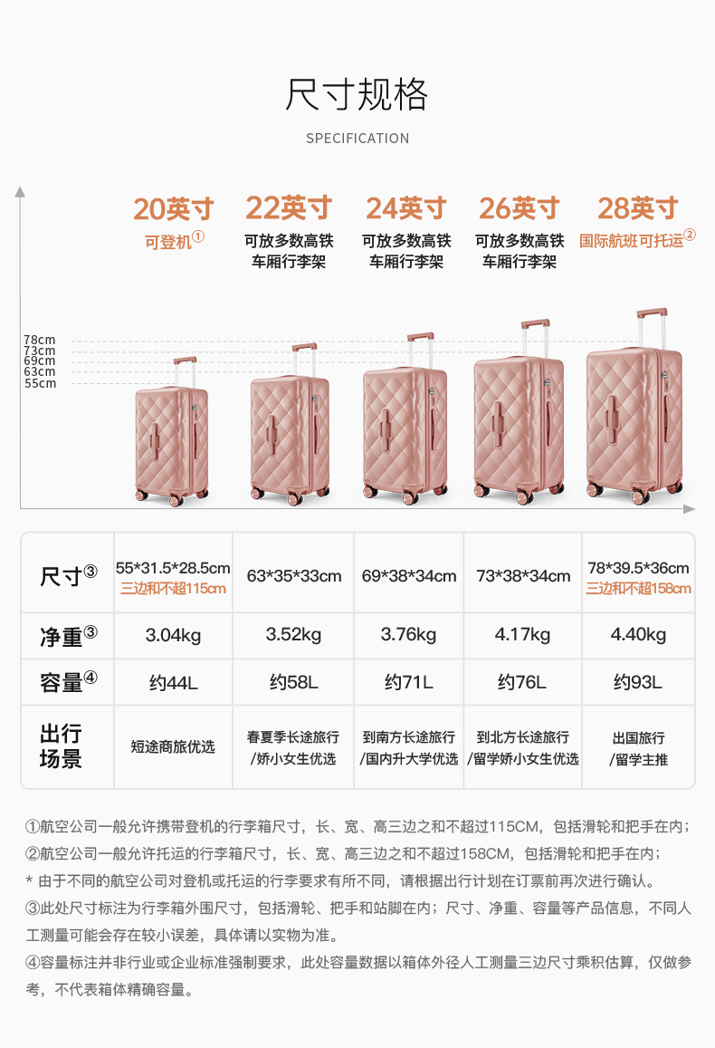 【红点奖设计师款】卡拉羊小香风皮革纹纯PC超轻大深舱魔方体行李箱CX8113