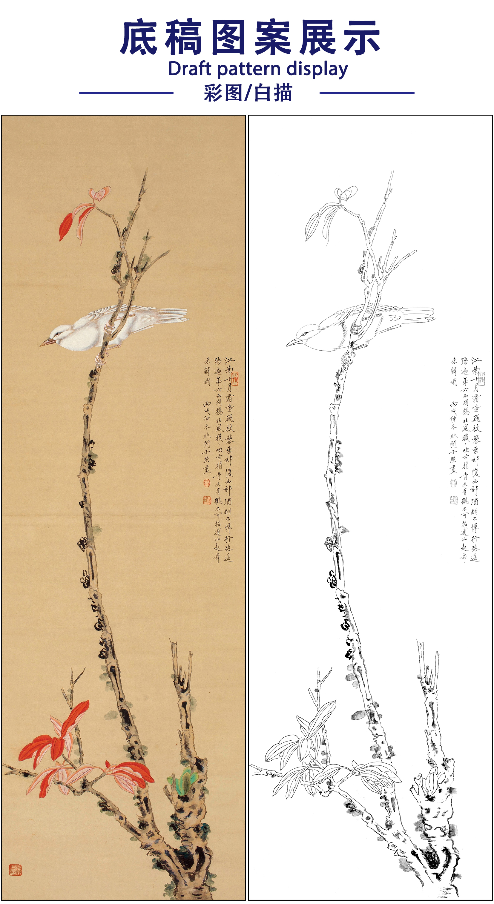工笔画白描底稿于非闇花鸟《花鸟》临摹勾线高清打印稿FA57