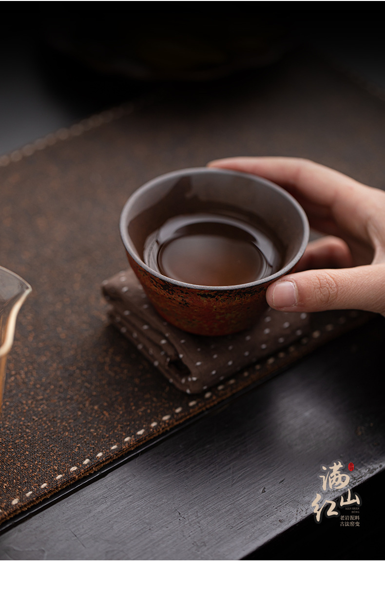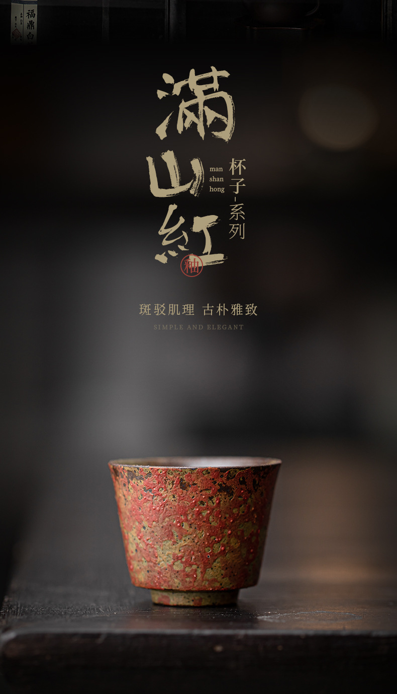 【中式自然古风元素❗️雅致茶事器型物美】老岩泥满山红赭石釉小茶杯 品茗杯陶瓷侘寂杯个人杯功夫茶杯茶盏。jb