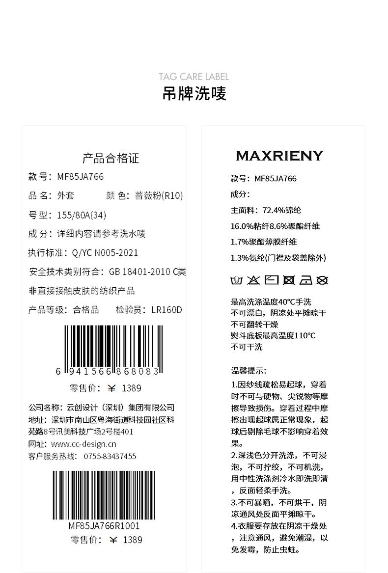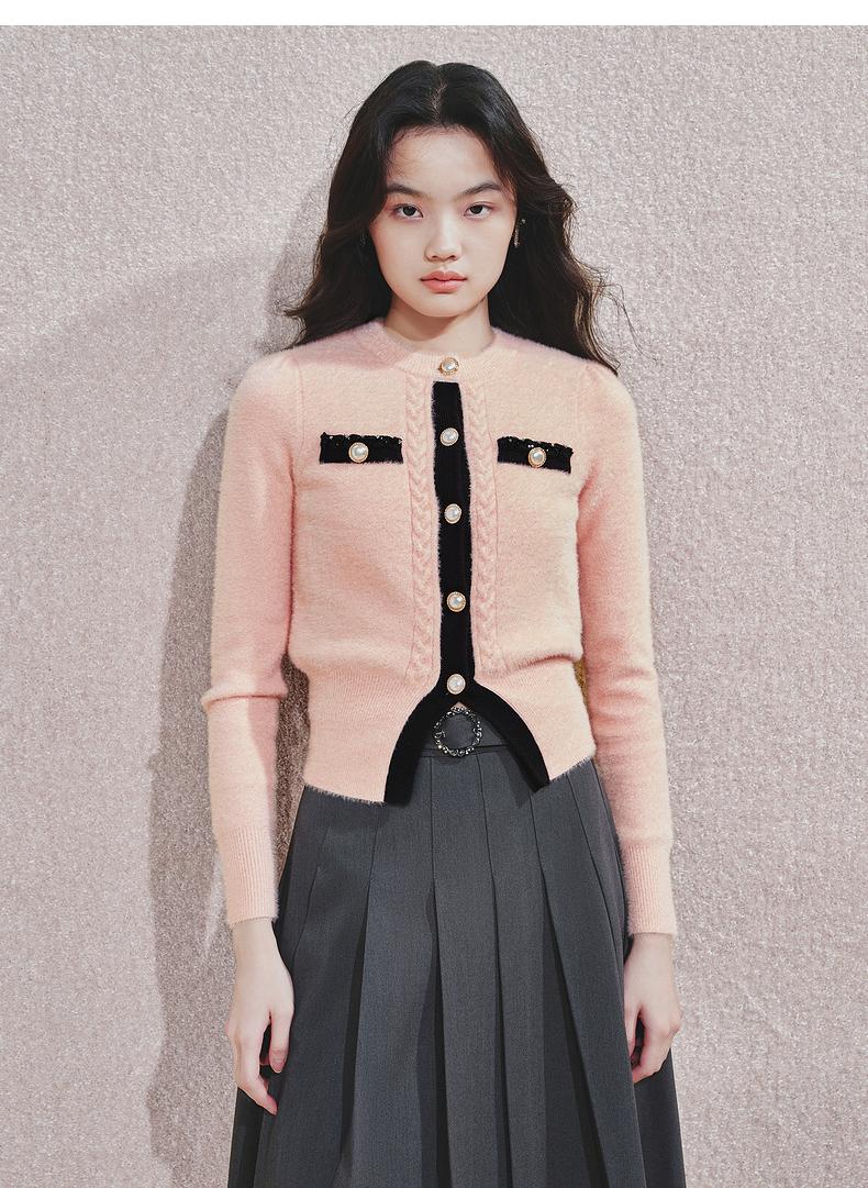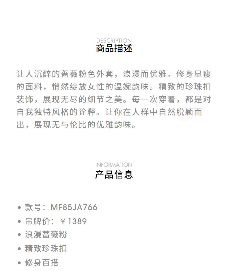 MAXRIENY浪漫优雅外套女秋冬新款蔷薇粉珍珠扣千金小香风早秋上衣(货号:MF85JA766)