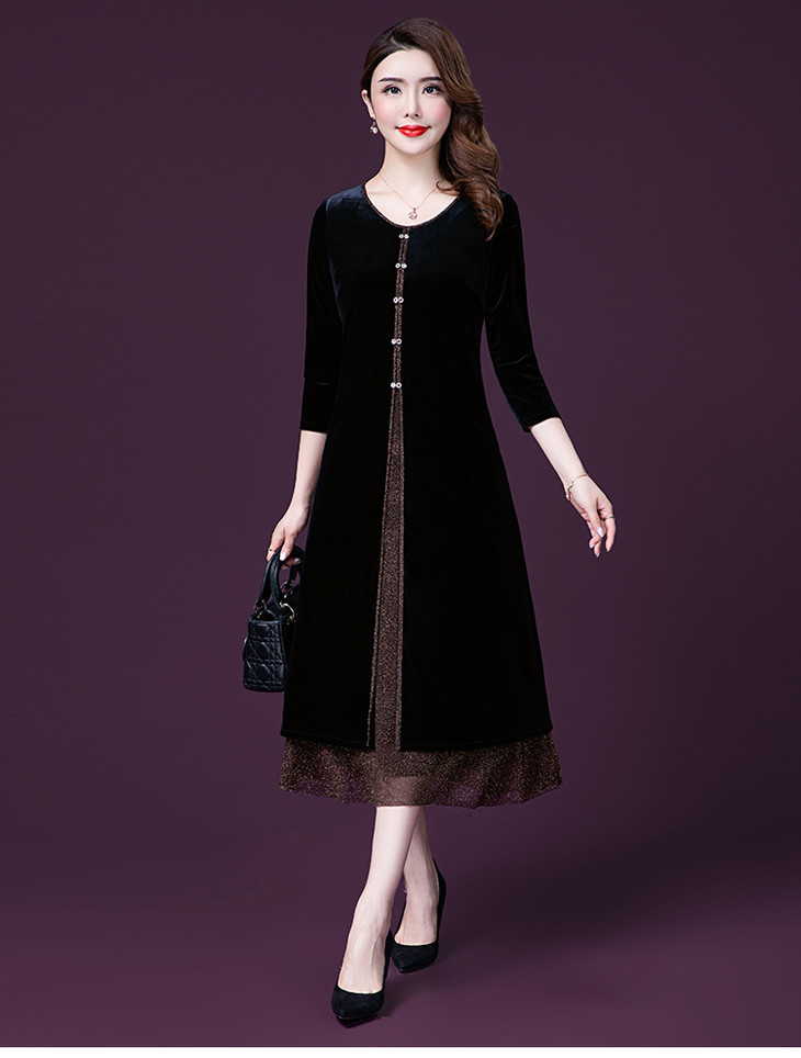 ZA2414高档重磅真丝香云纱中款旗袍裙