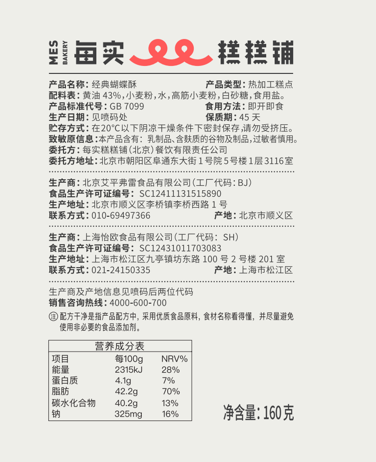 经典蝴蝶酥 160g