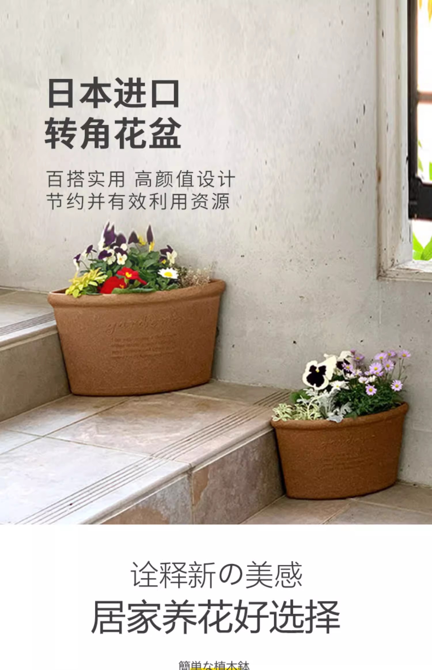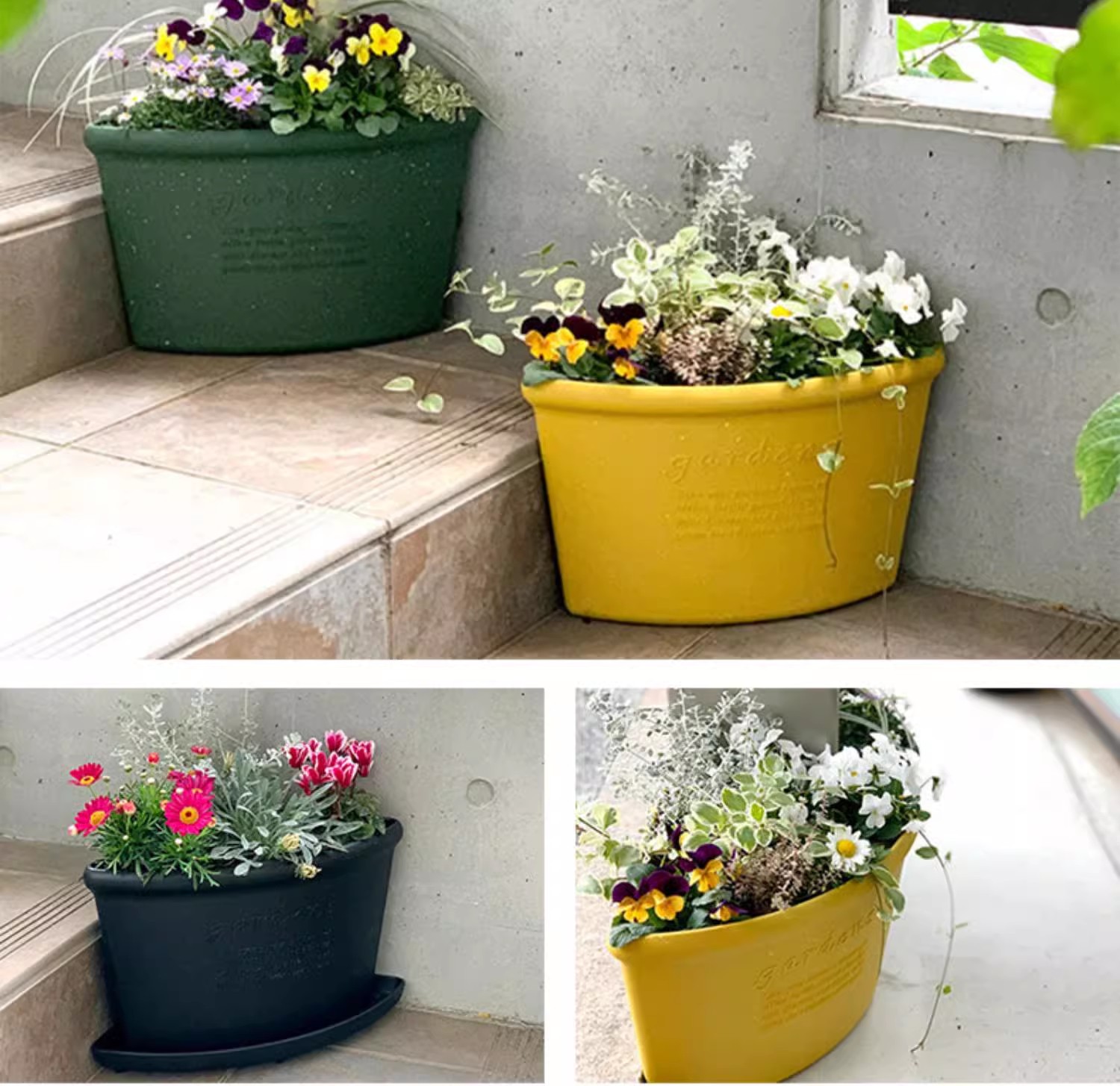 日本进口 Hachiman Gardens转角花盆&托盘(绿色)