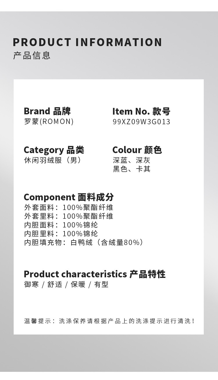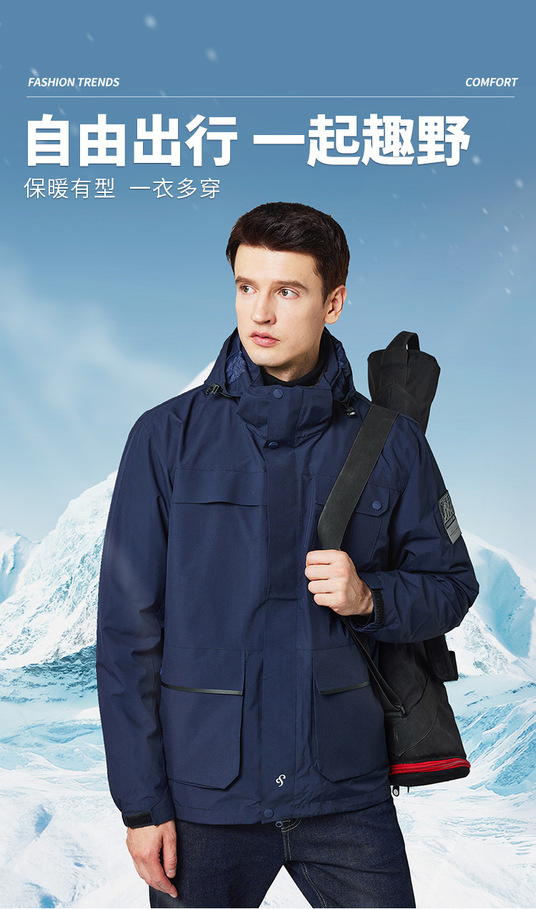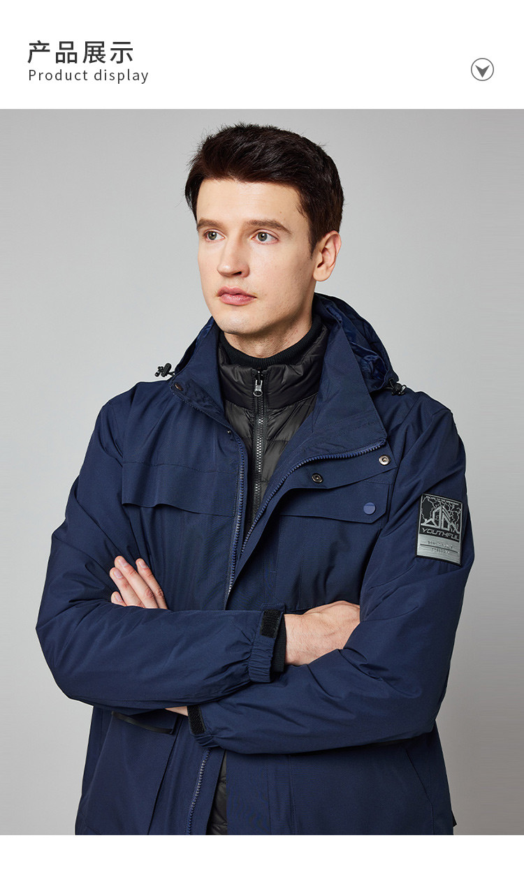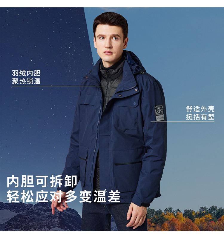 【羽绒内胆】罗蒙秋冬男士外套男时尚休闲户外保暖可拆卸内胆御寒外套