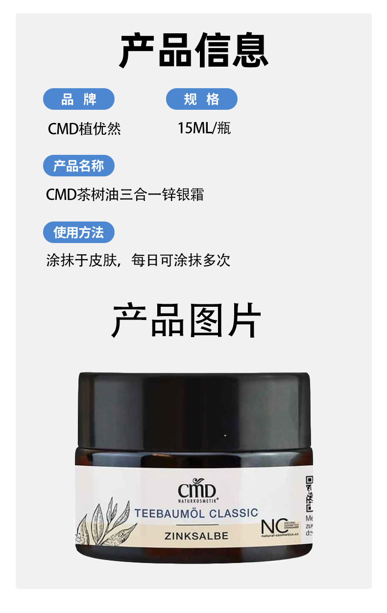 CMD茶树油锌软膏15ml/瓶
