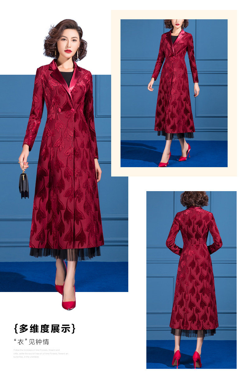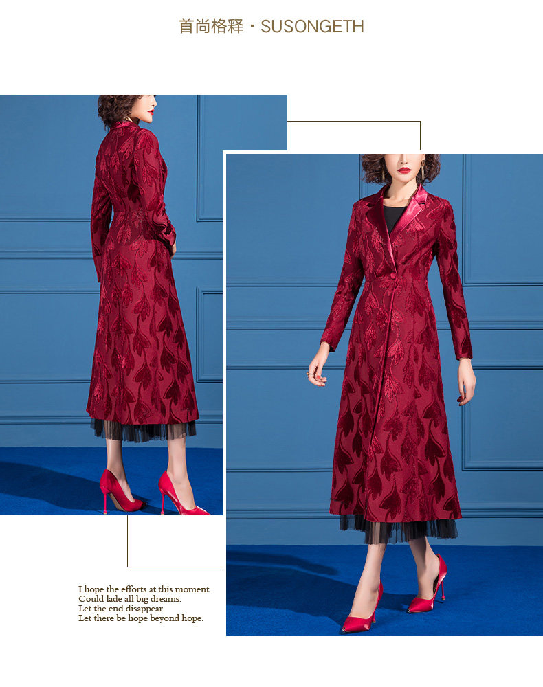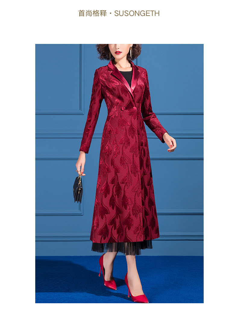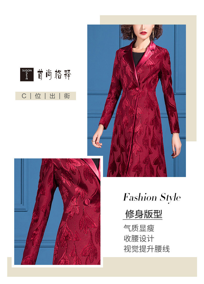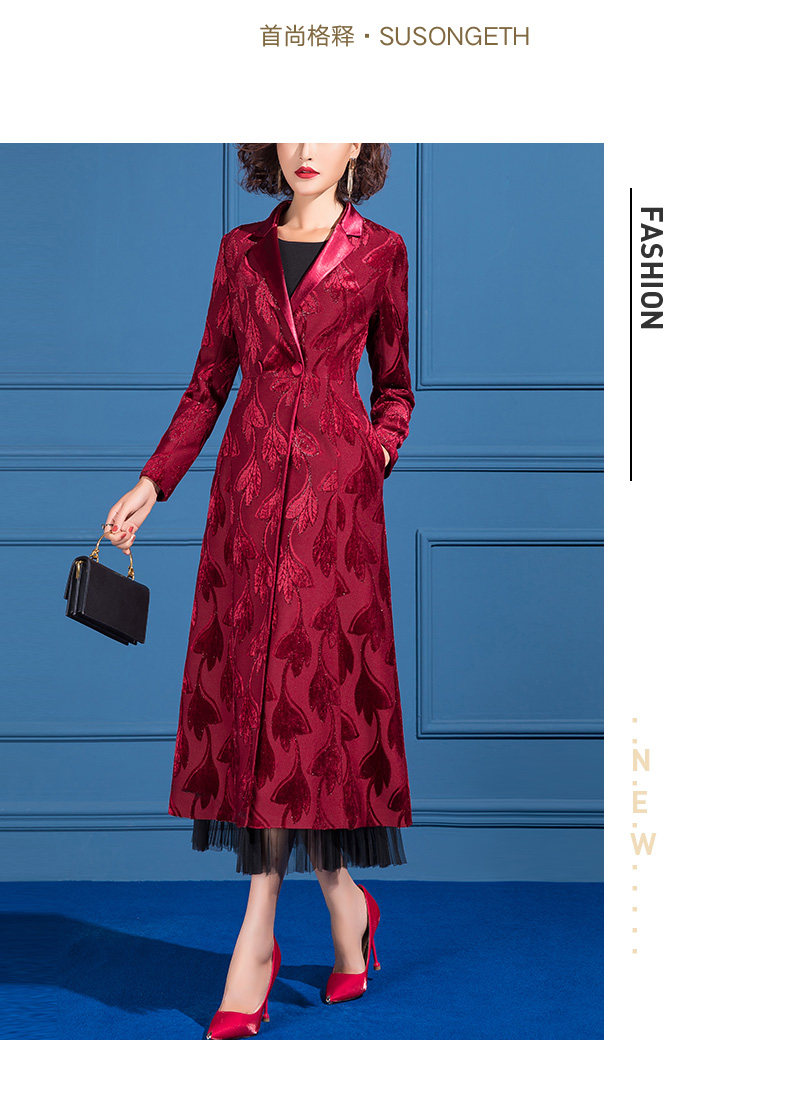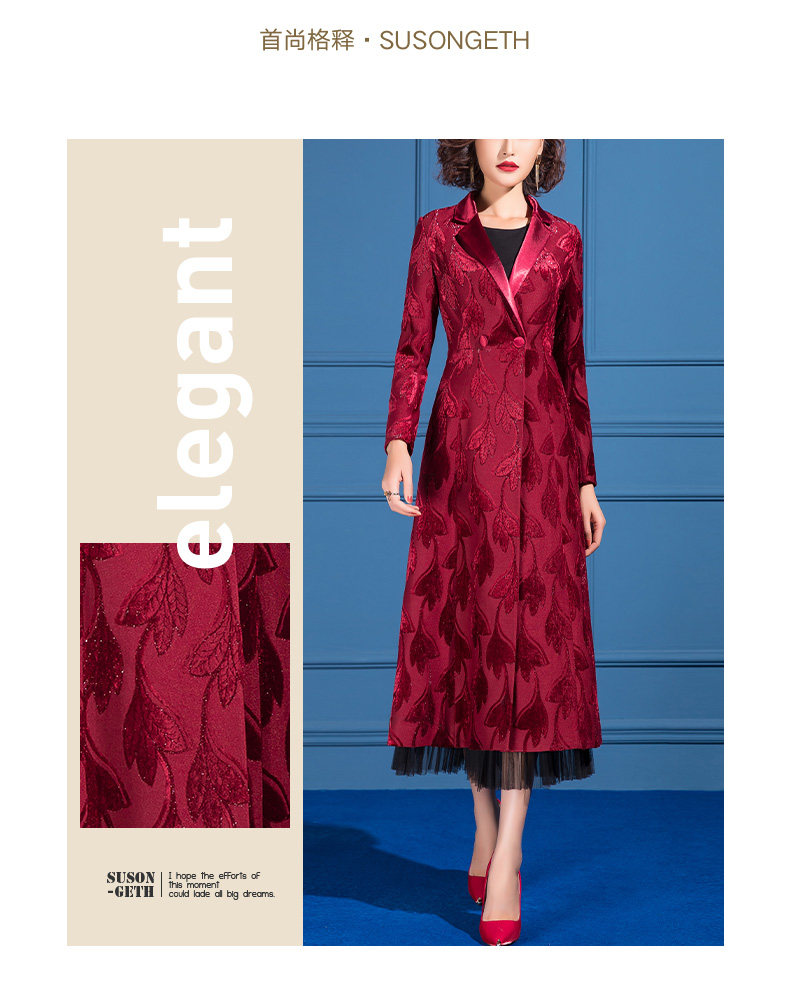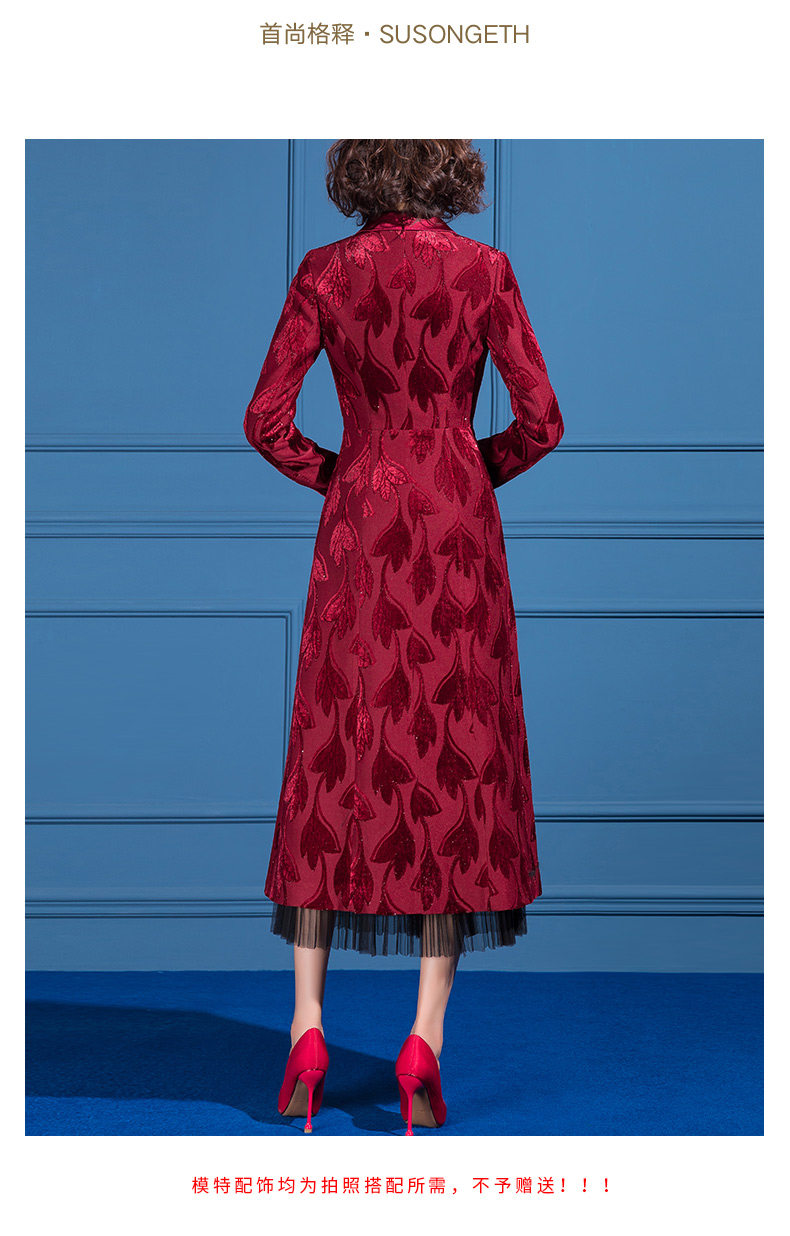 SSGS-新款中长款收腰显瘦红色高贵大气外套