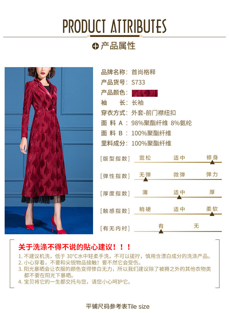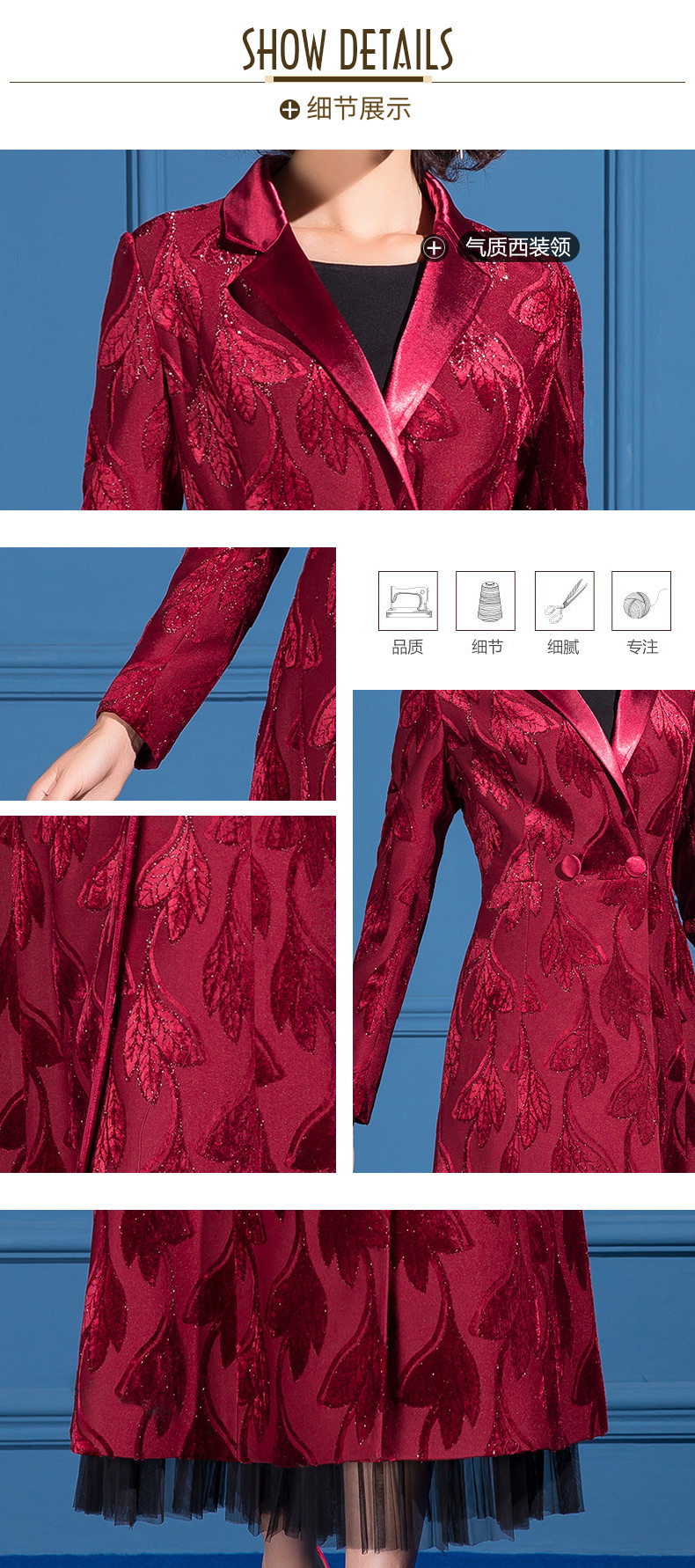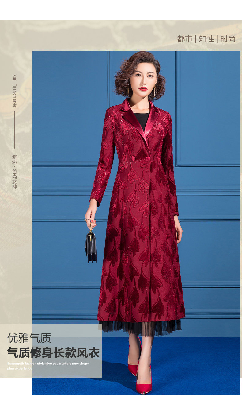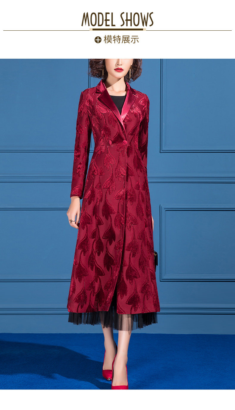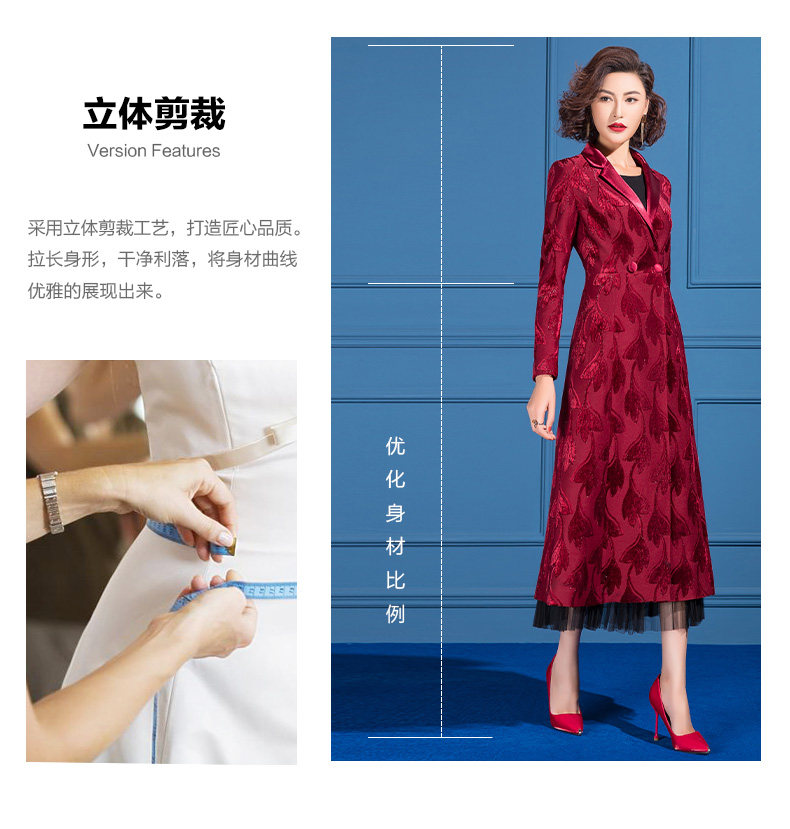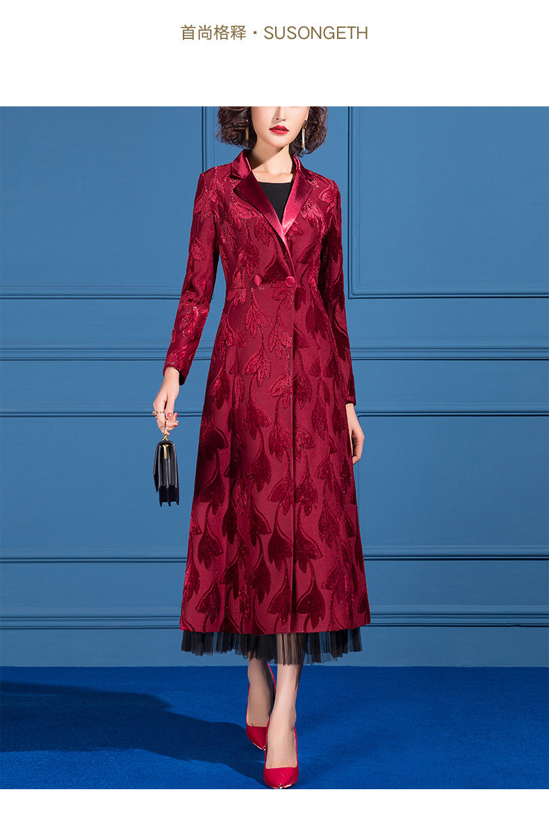 SSGS-新款中长款收腰显瘦红色高贵大气外套
