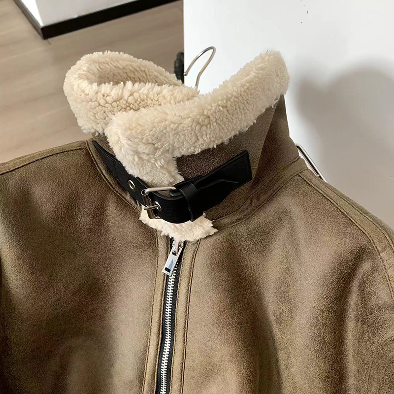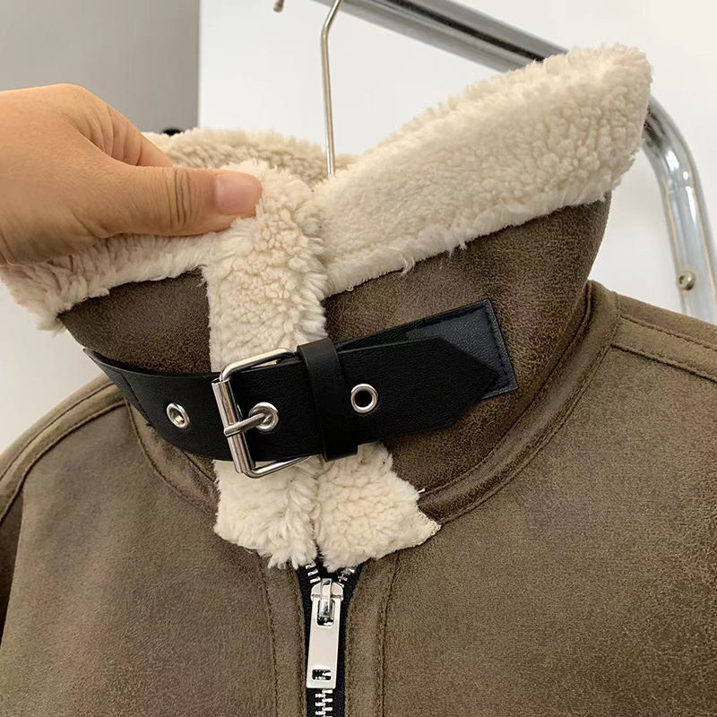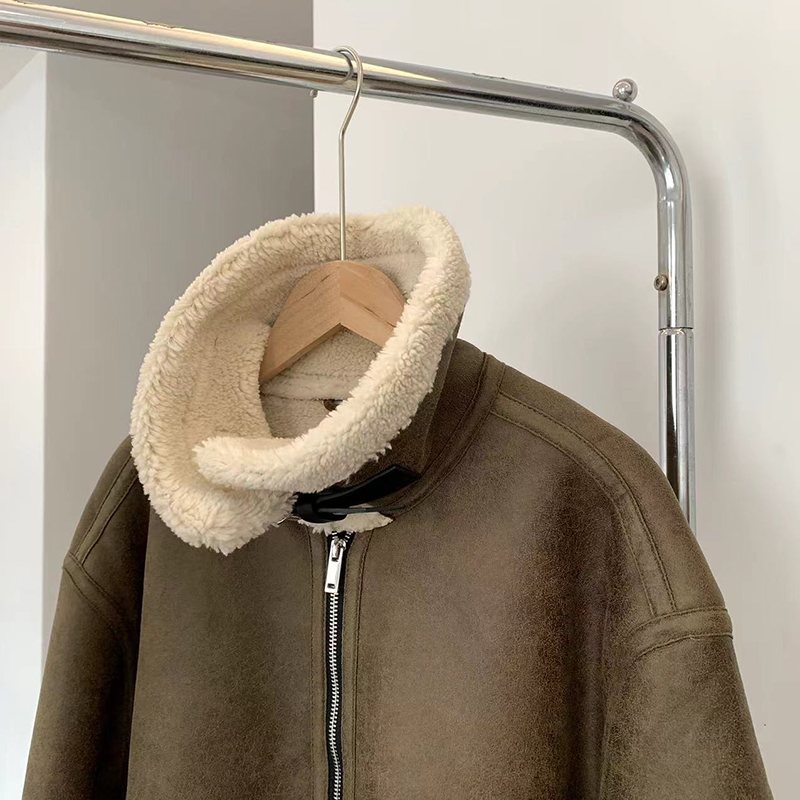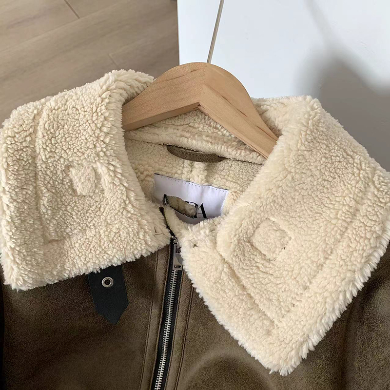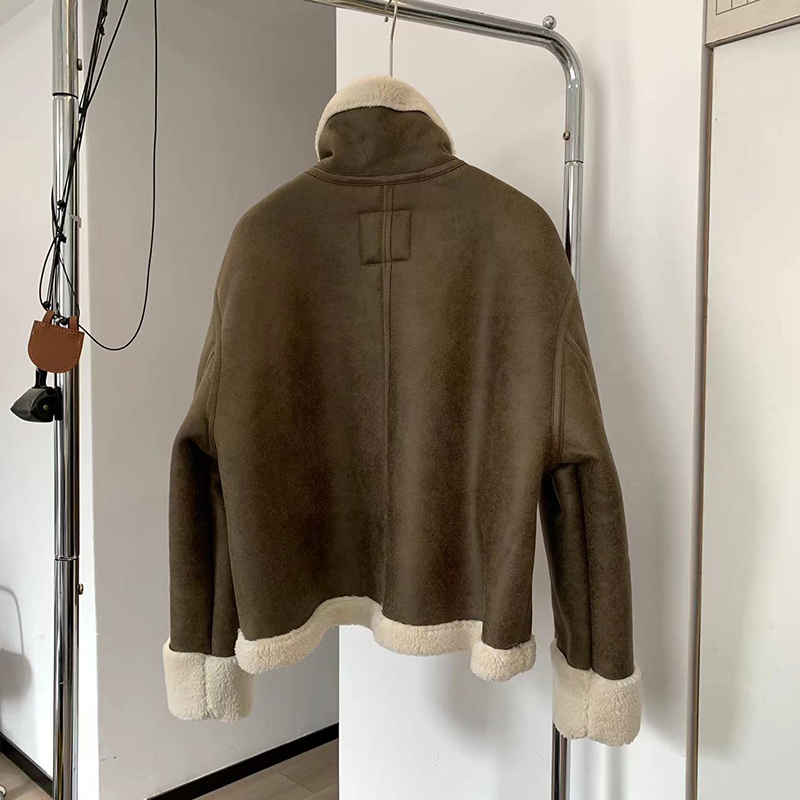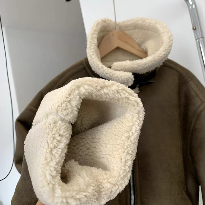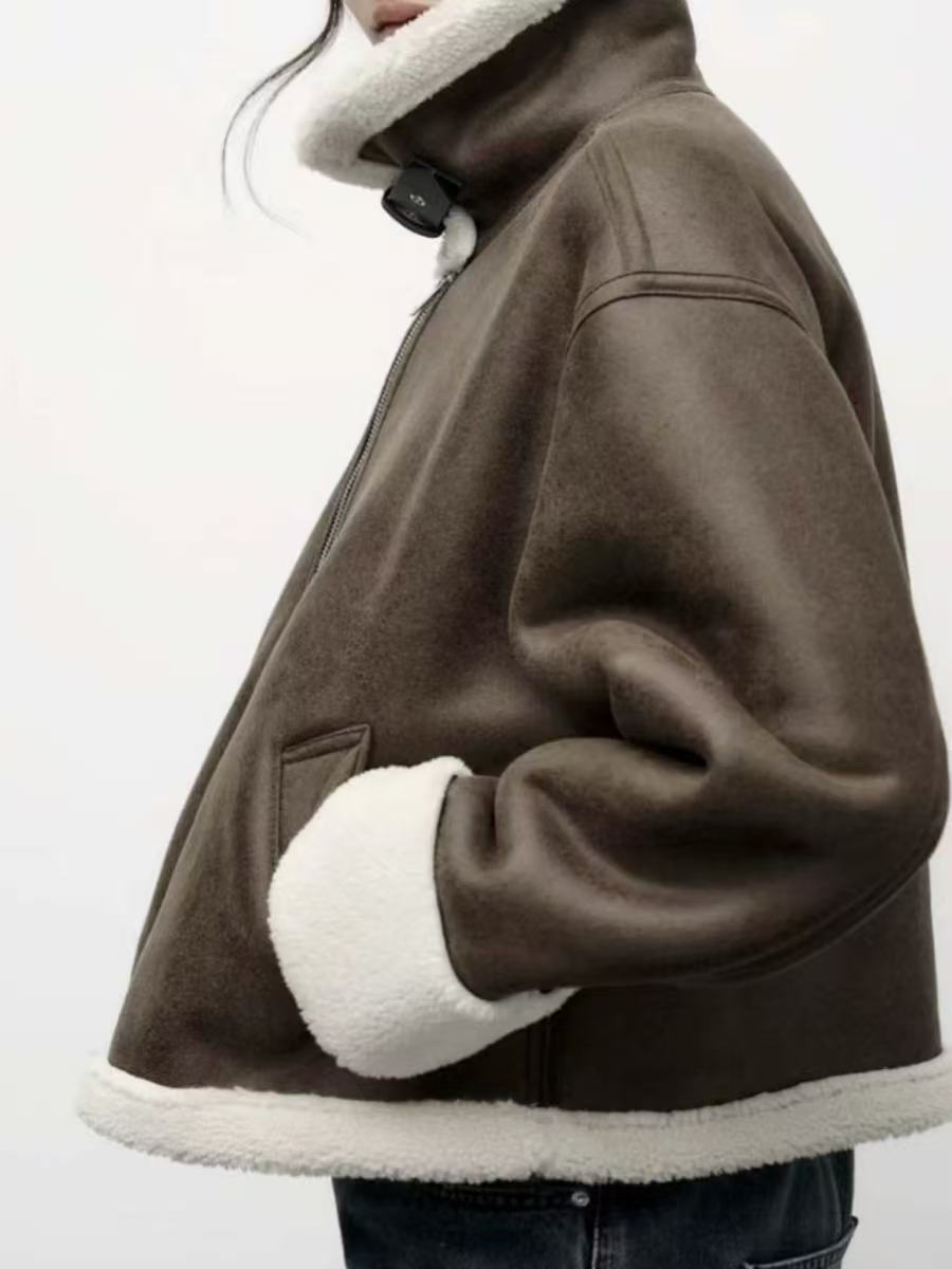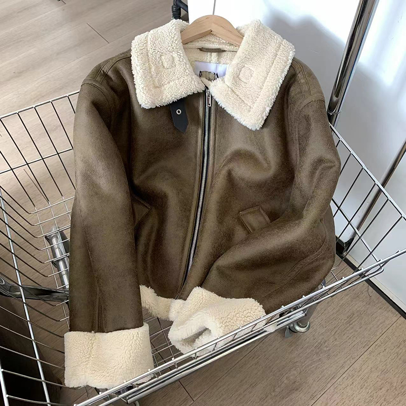 棕色环保皮质+羊羔绒内里,柔软又保暖秋冬穿敲合适!