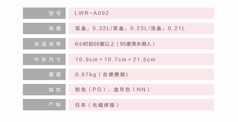TIGER虎牌进口含便携袋保温不锈钢便当盒(LWR-A092)