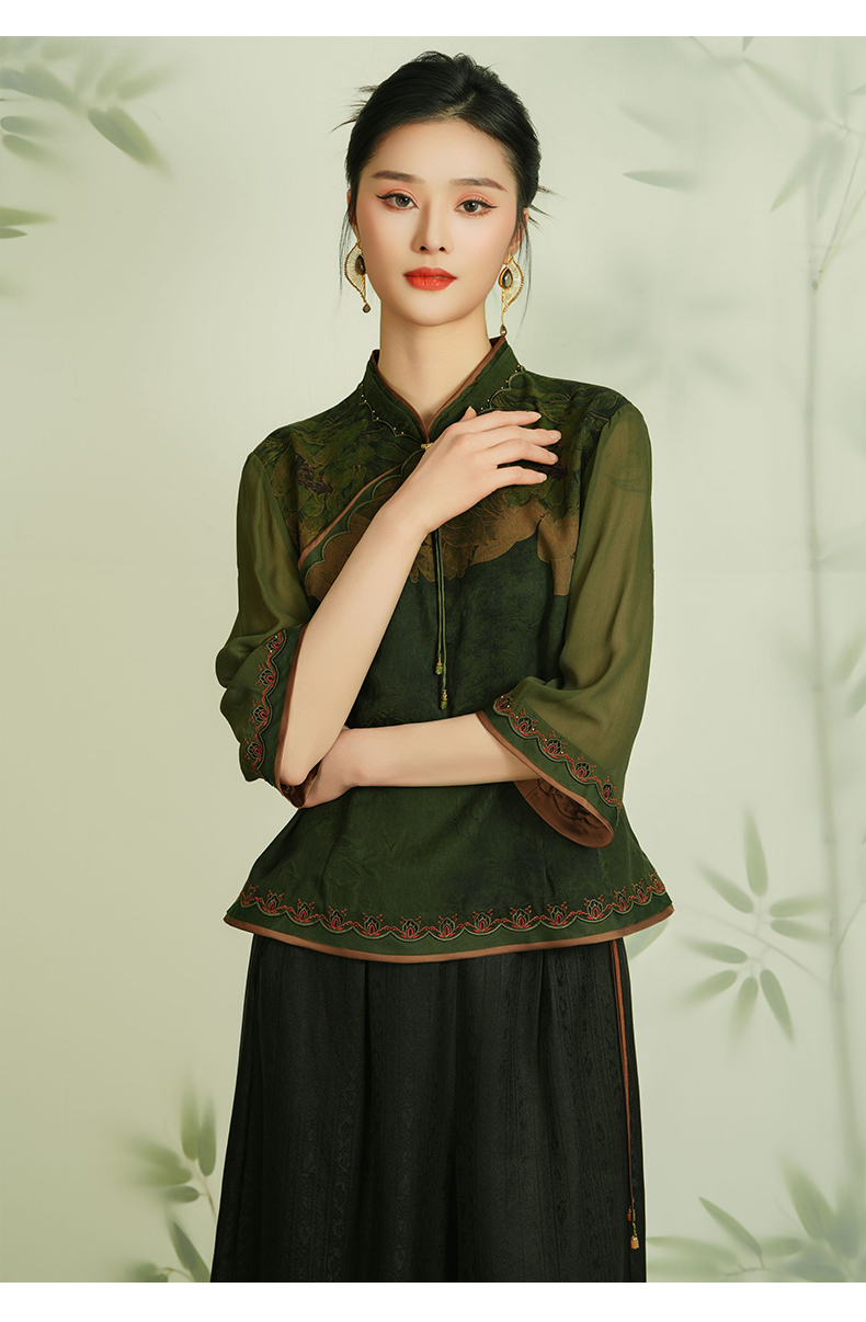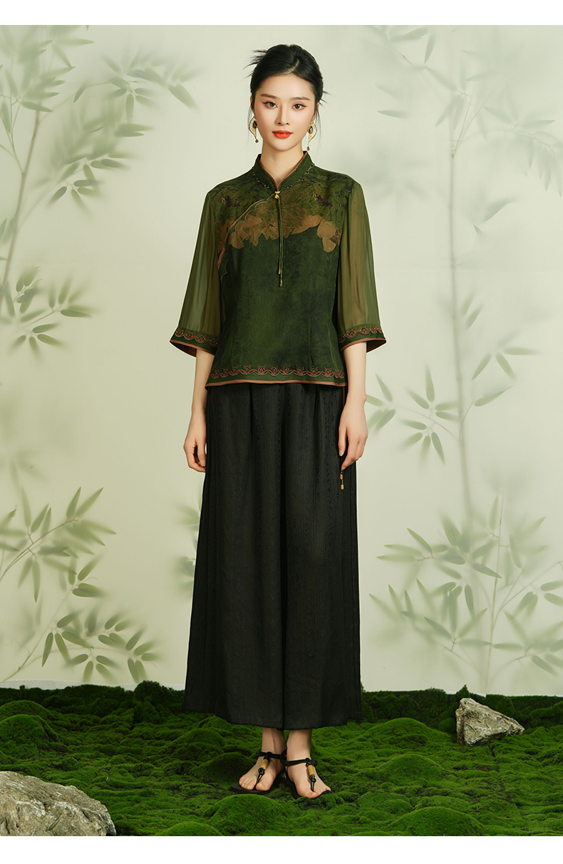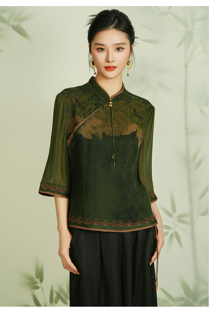 【静谧荷花】【香云纱】乔万尼新品古典衬衫24mm重磅100%真丝短袖上衣EM2C750