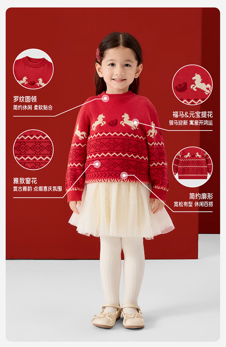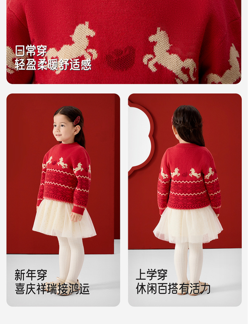 【商场同款】英氏儿童毛衣冬季保暖新年毛织衫男童上衣女童新款