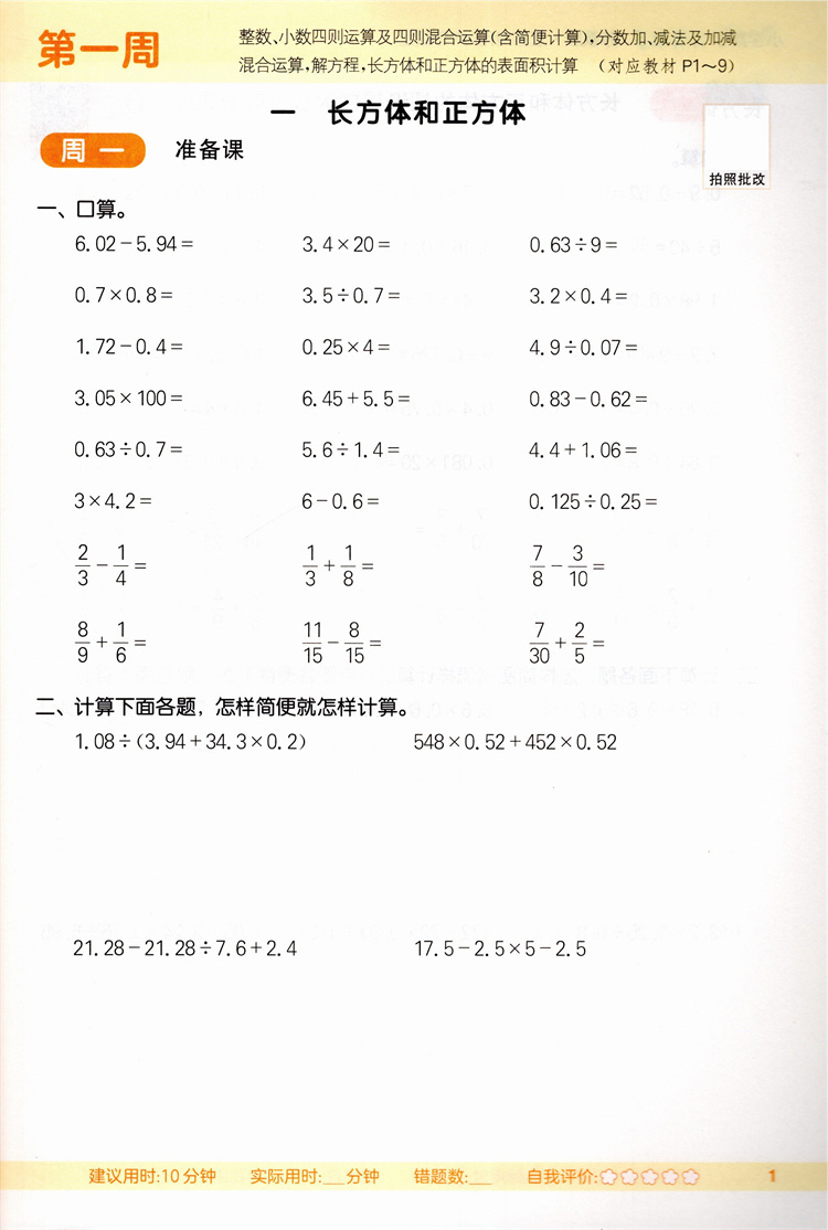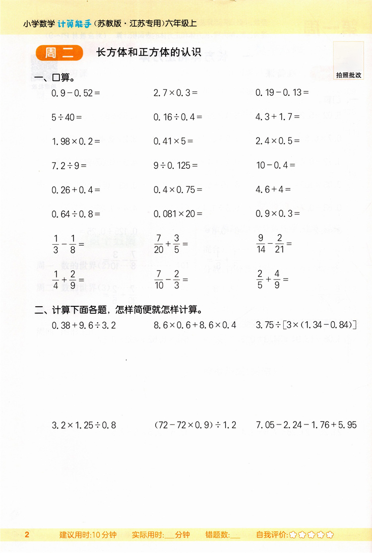 2025秋小学数学计算能手6上 包邮 苏教版 小学六年级上册 含答案 口算估算笔算 小学数学6上 江苏专用 强化训练练习题