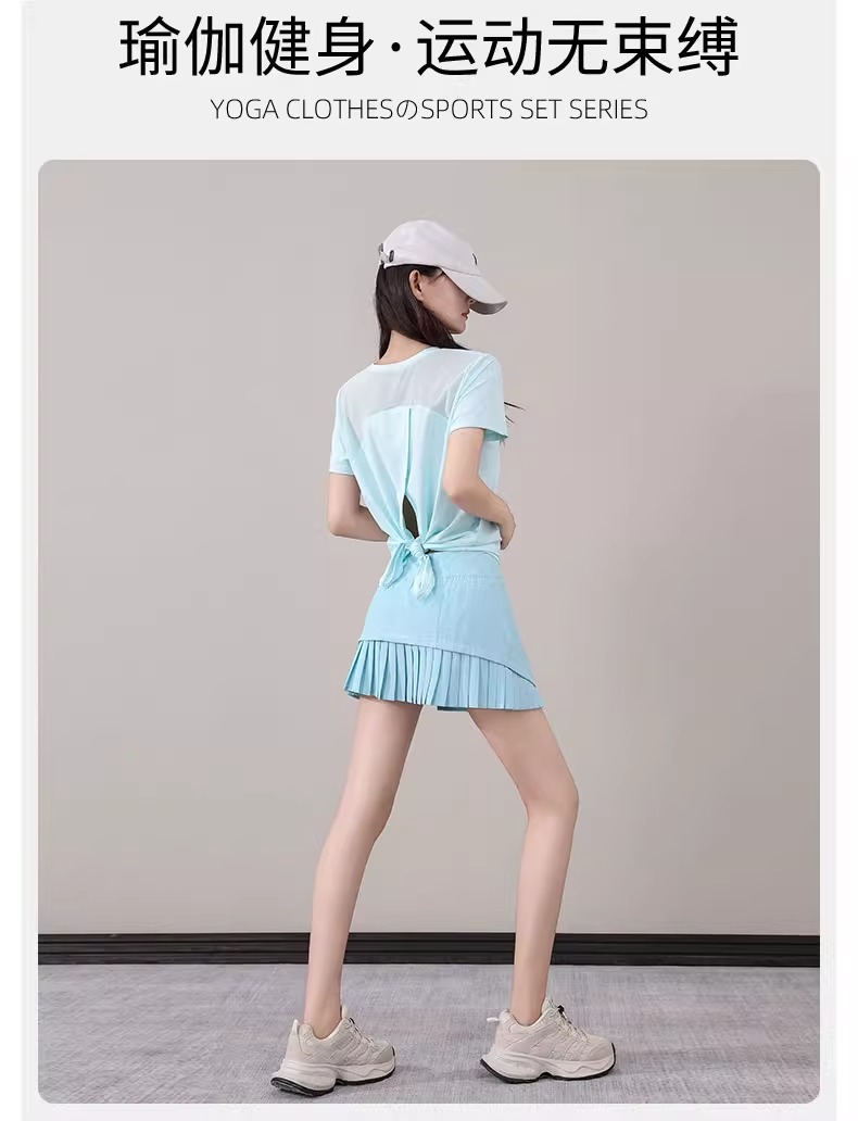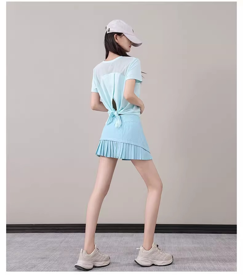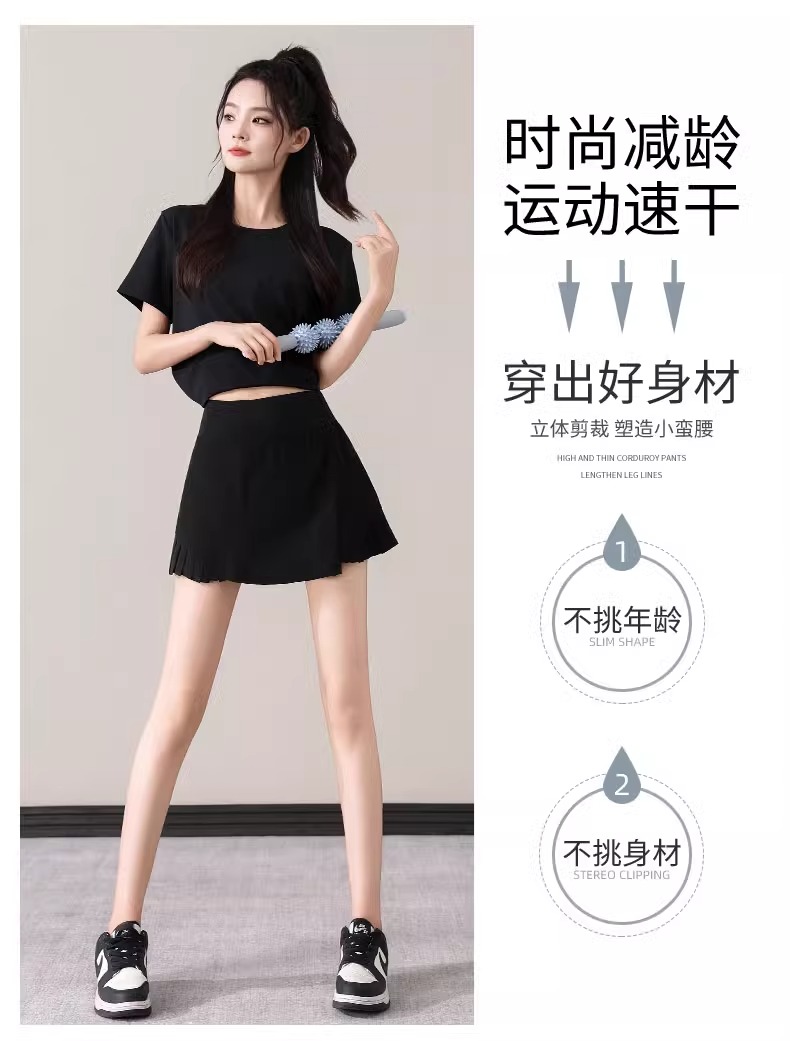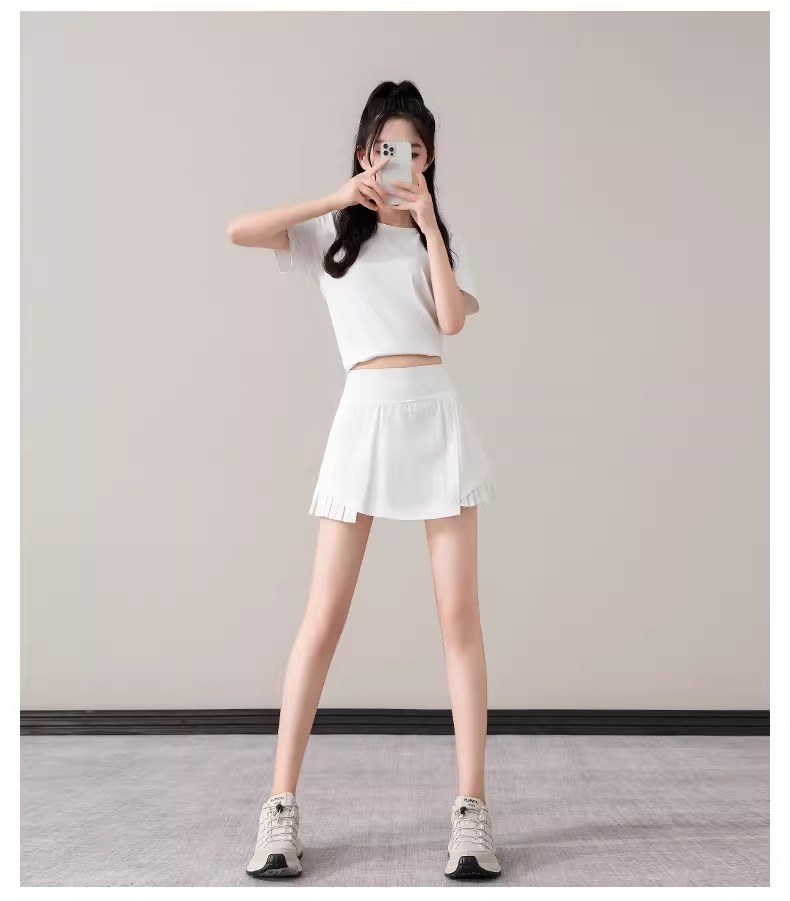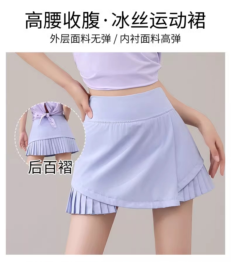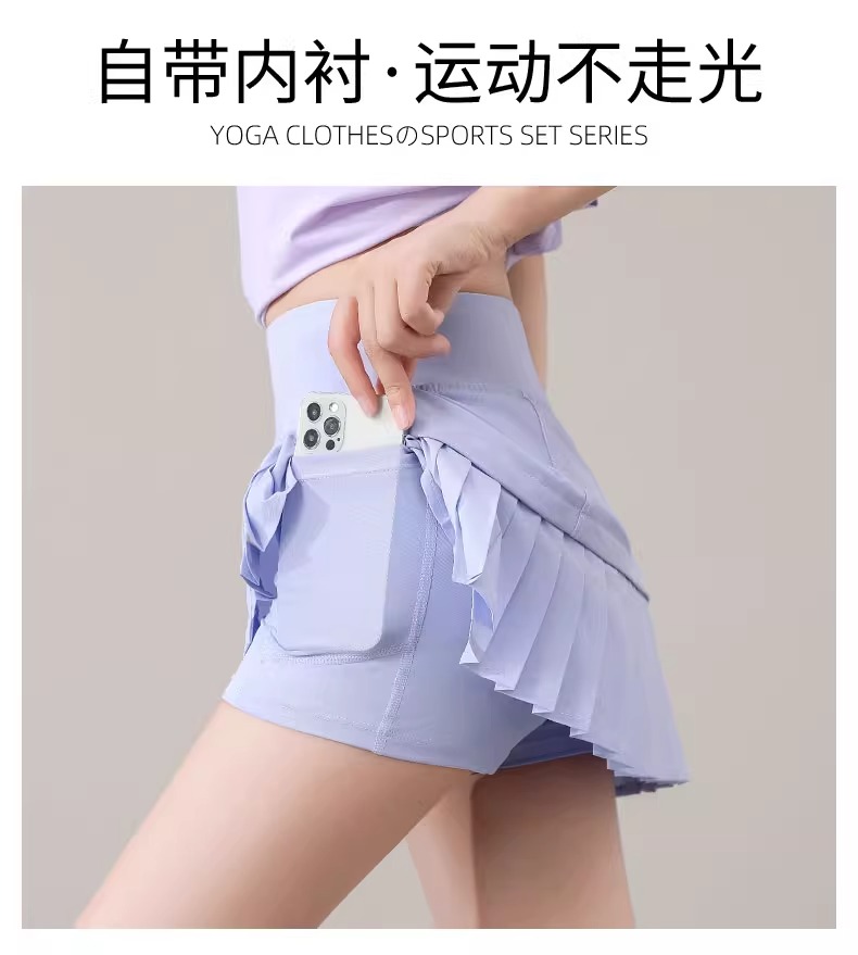 跃牌【美西西系列】裸感高尔夫网球裙运动跑步百褶裙假两件防走光有口袋瑜伽短裙DQ-062