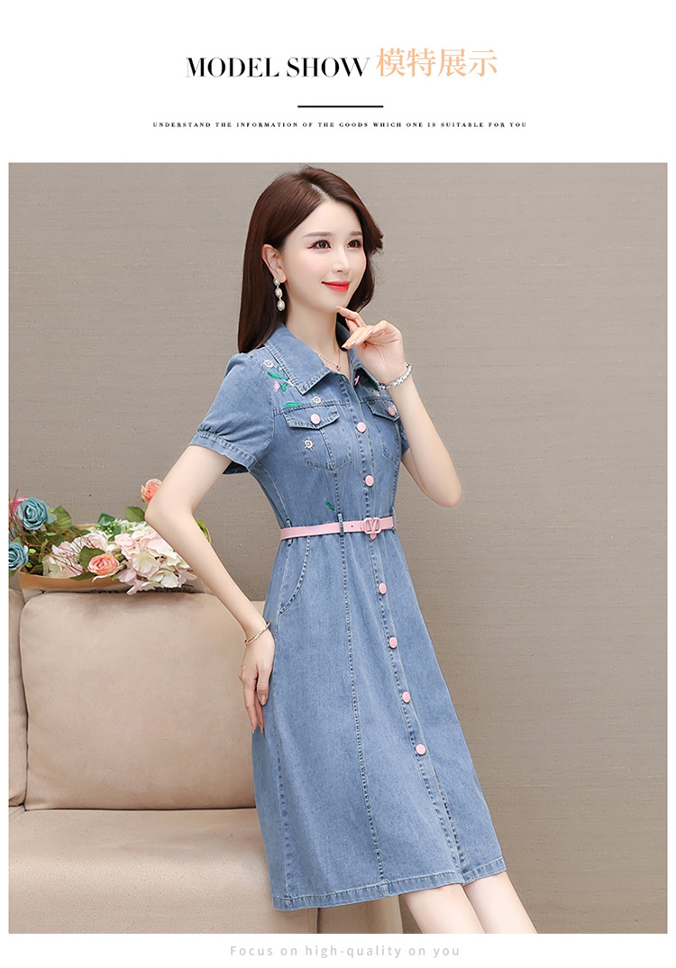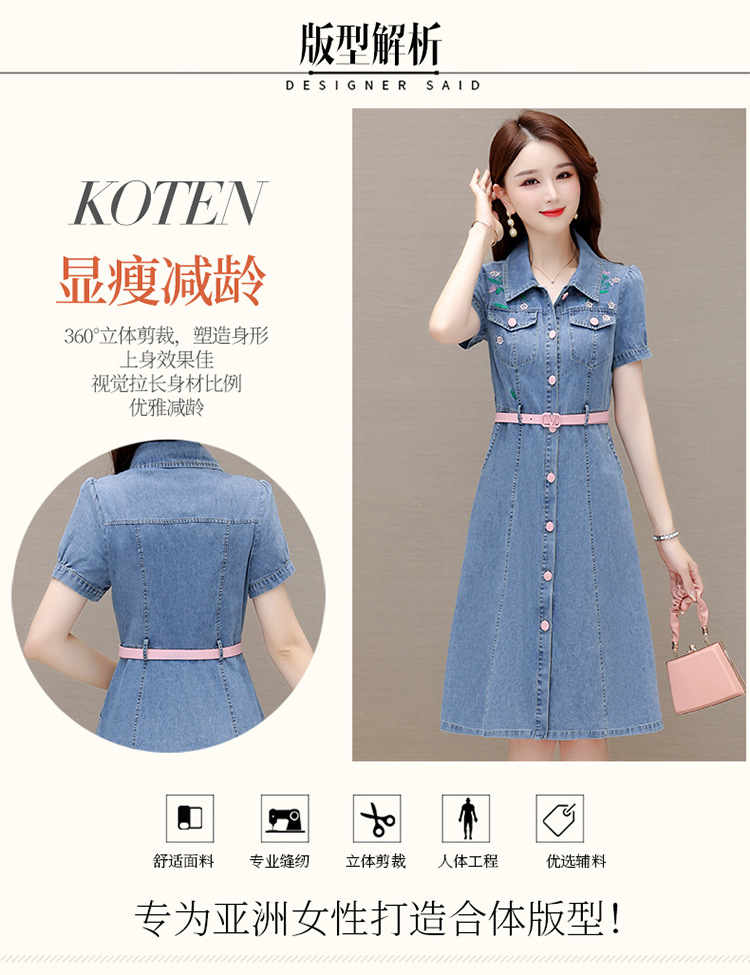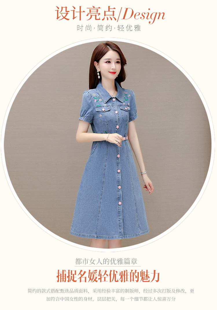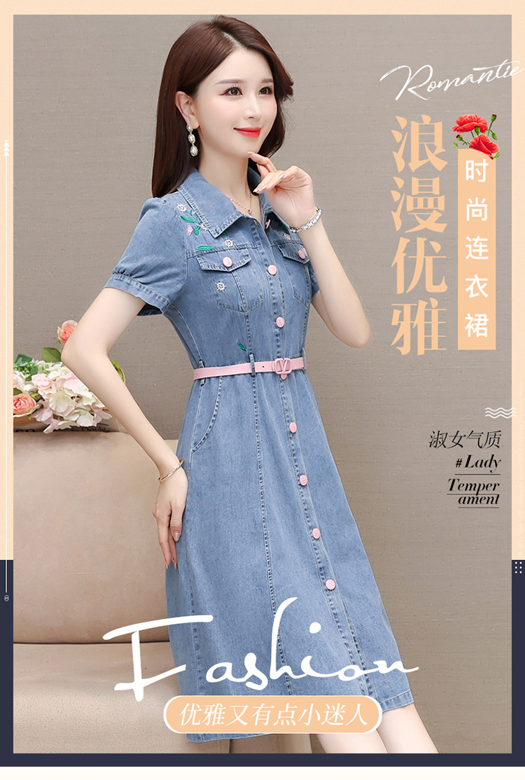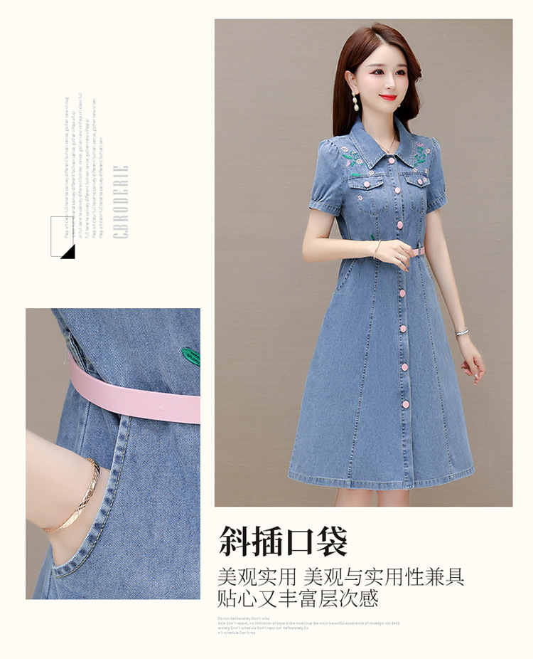 时尚牛仔裙,衬衣领单排扣连衣裙QYM-X23A082