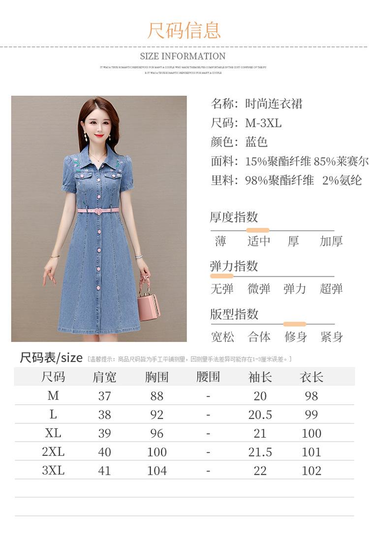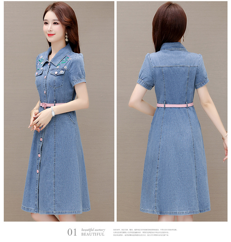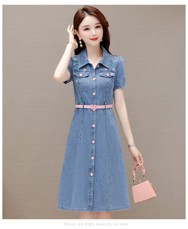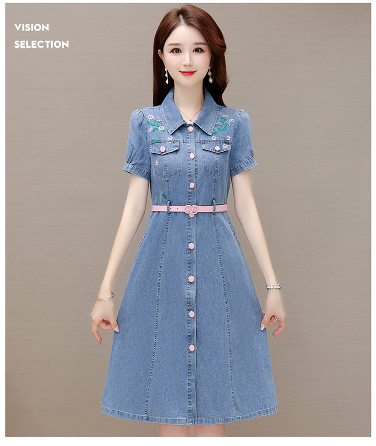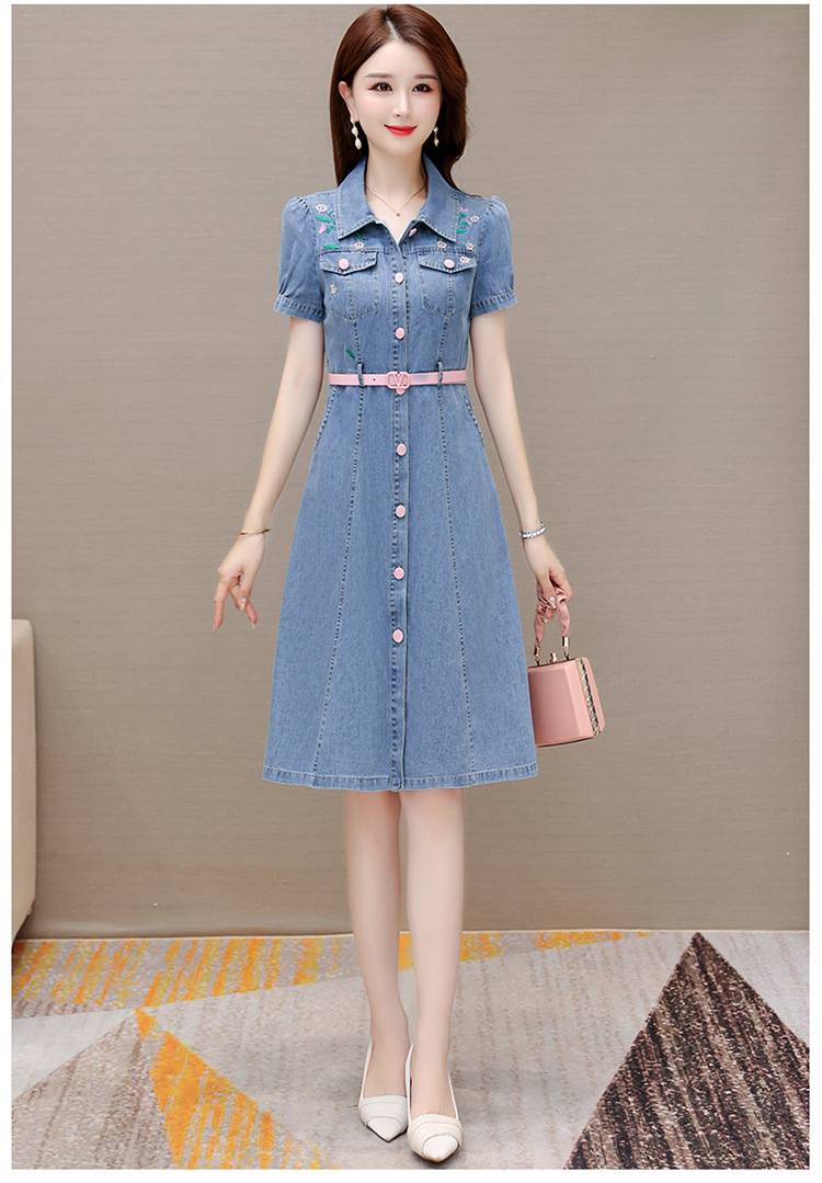 时尚牛仔裙,衬衣领单排扣连衣裙QYM-X23A082