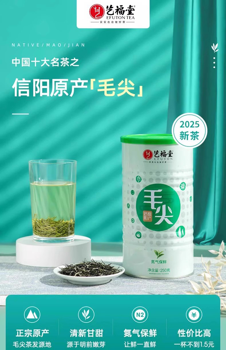 【买2送观山杯】艺福堂 信阳原产毛尖 明前特级 2025年新茶 250g/罐