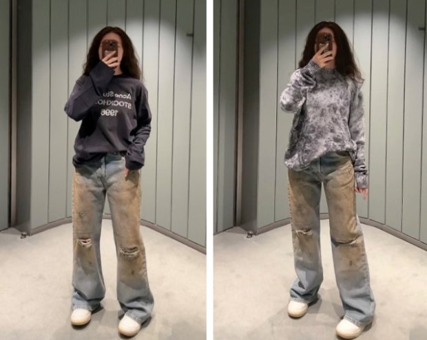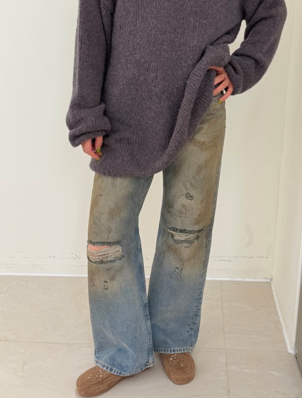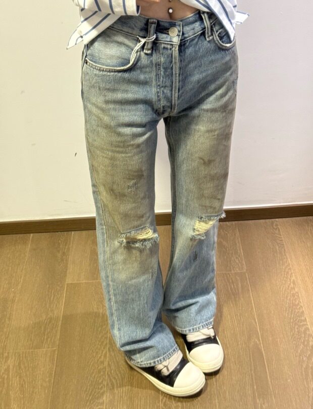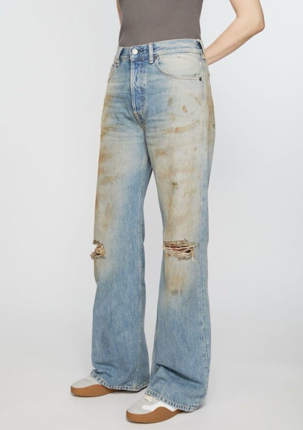 Acne 2021 泥染 斑驳破洞款 做旧擦黑效果 脏酷帅 哈~