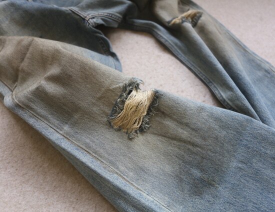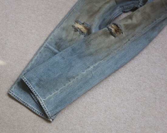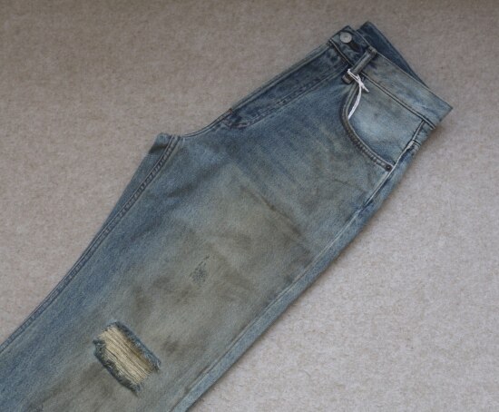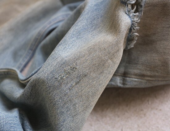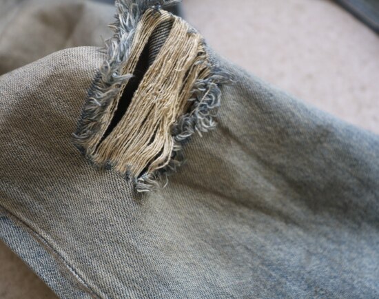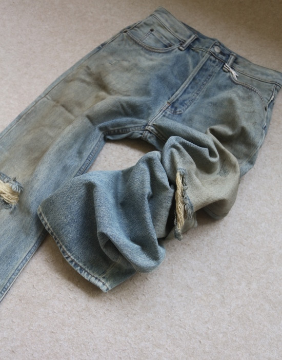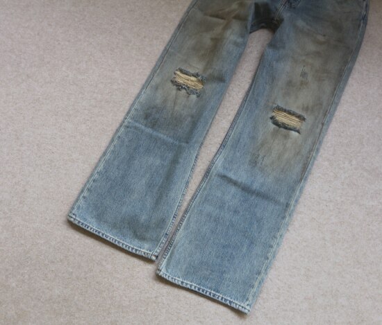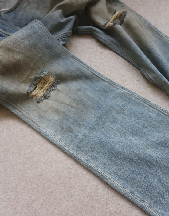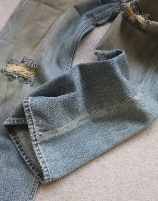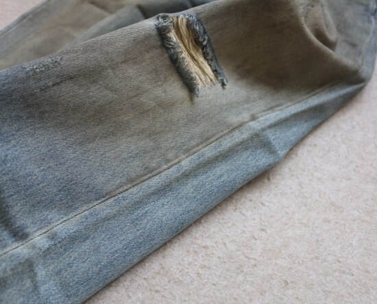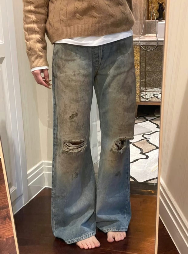 裤身上的 猫须 擦黑 拉丝破洞 裤脚小毛边 都是纯手工的