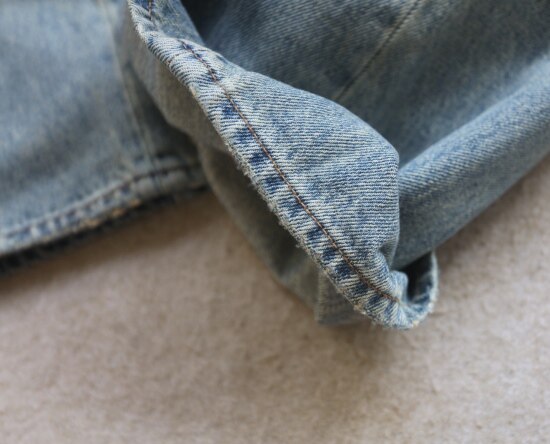 靛蓝色 是牛仔基础色 经环保石洗处理 呈现出很自然的做旧感