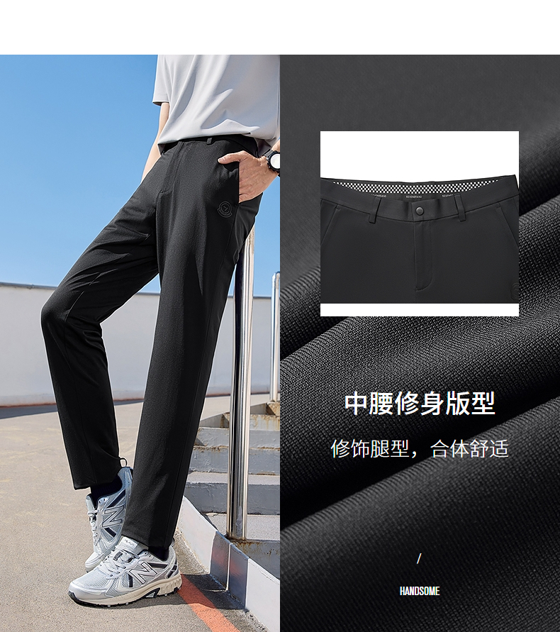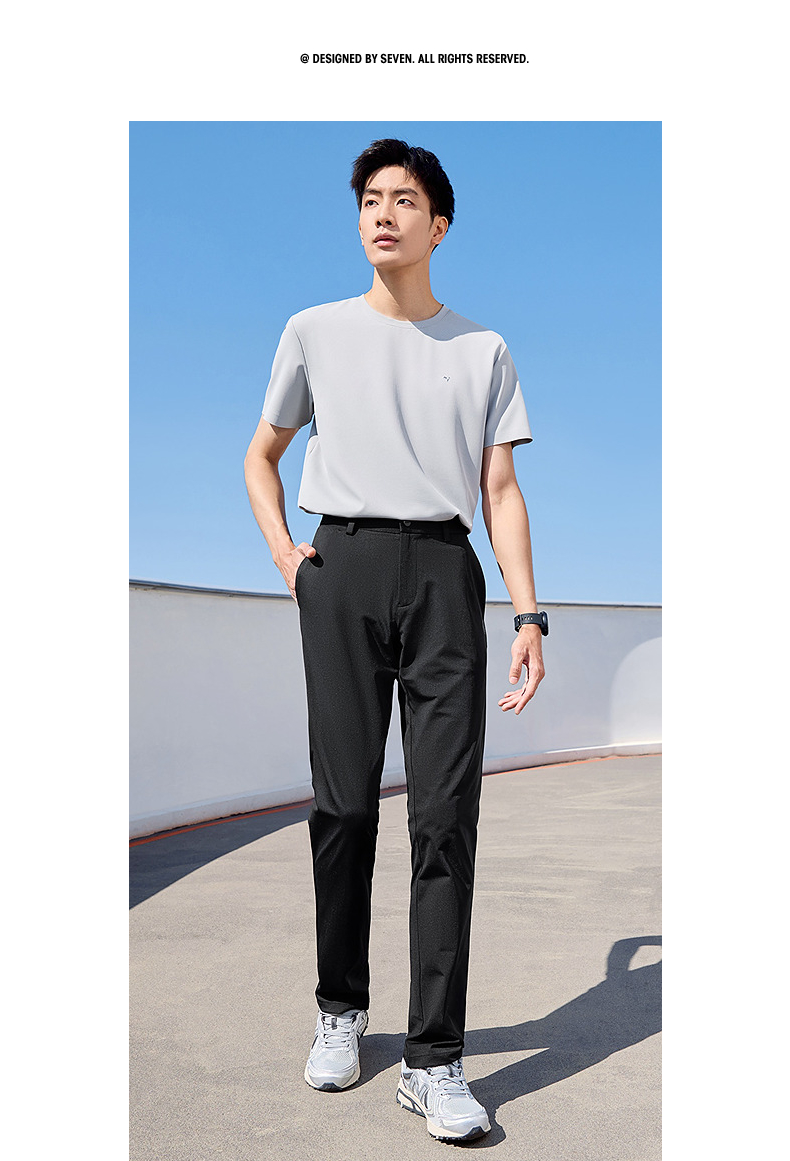 【梁育帅同款】柒牌男装弹力休闲裤男2025春季新款户外百搭中青年修身直筒长裤子128H73180