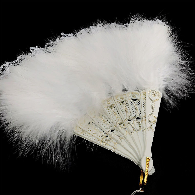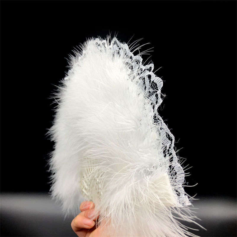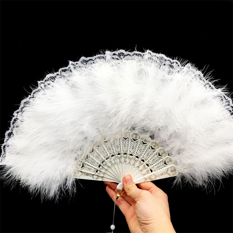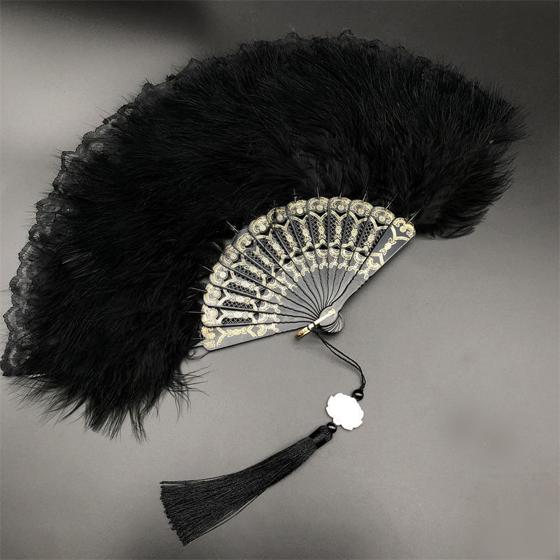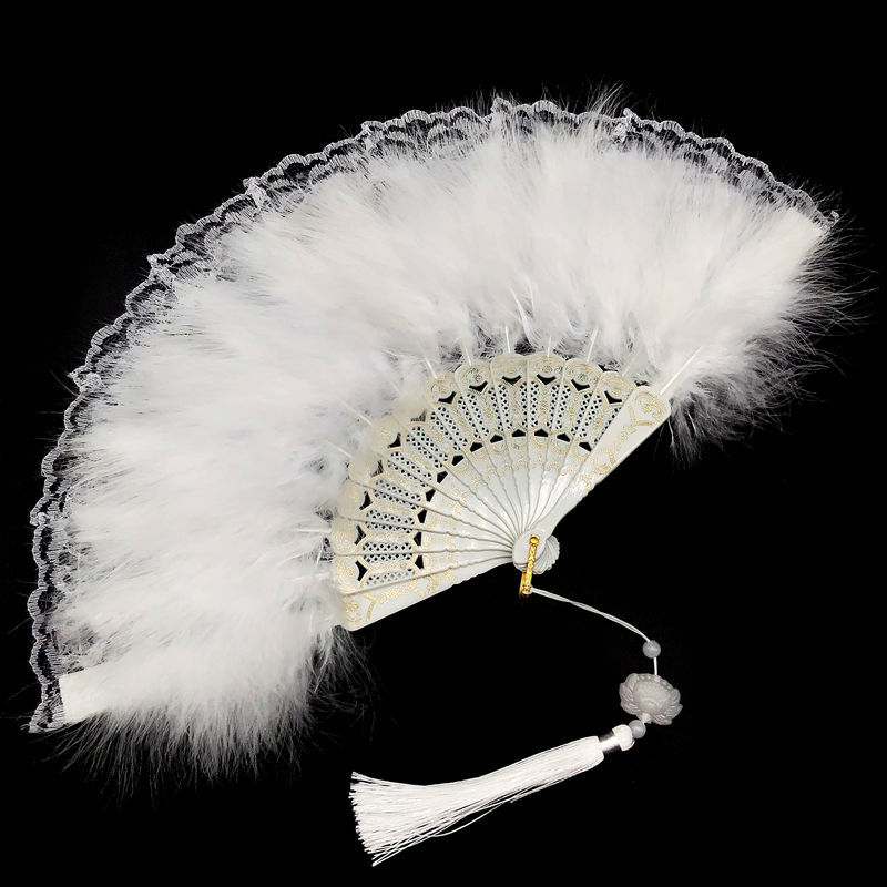 羽帝新款复古舞蹈扇子洛丽塔旗袍走秀拍照折扇暗黑系蕾丝羽毛扇国庆出游