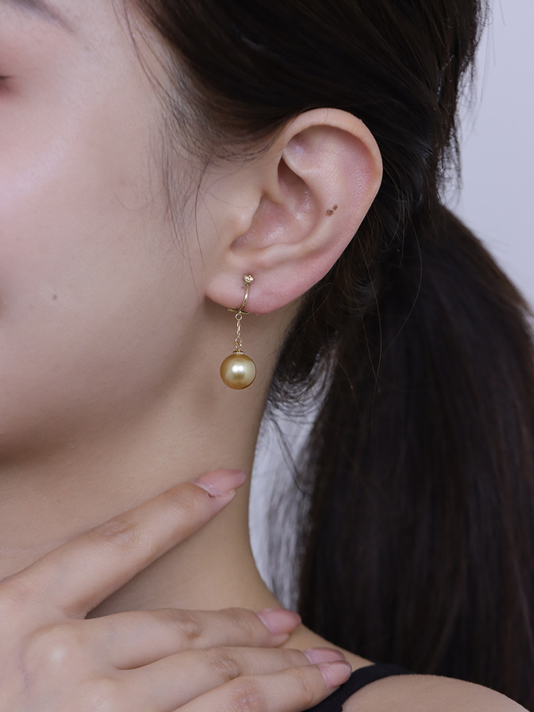 【挚友限定】(耳线款)18K金可换珠耳夹 浓金极光南洋金珠
