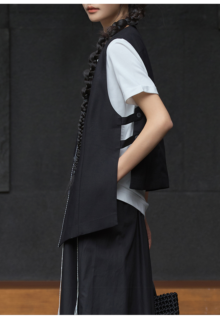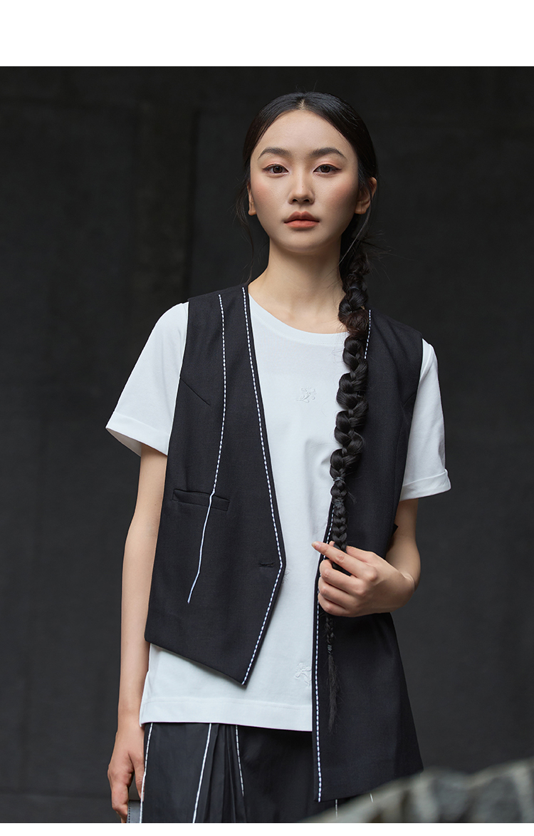 famecoco范可儿品牌原创不规则马甲女夏v领叠穿马夹FAC3CA012