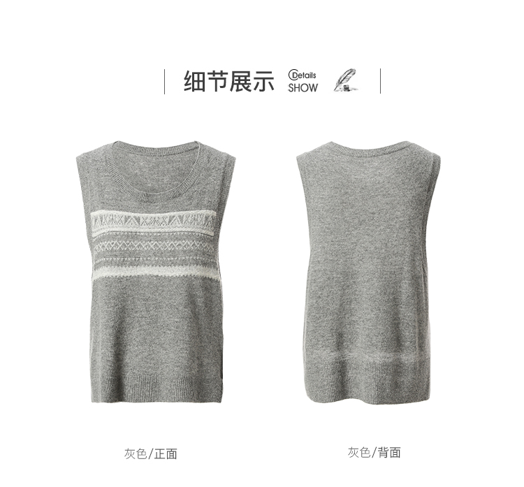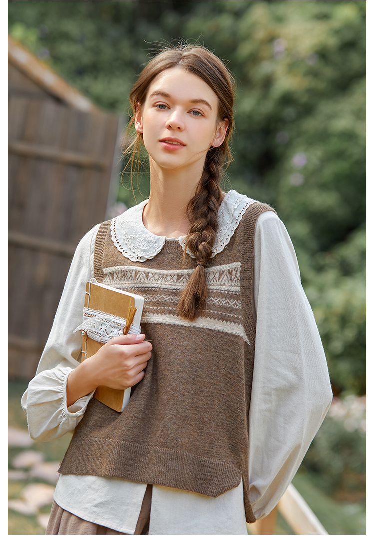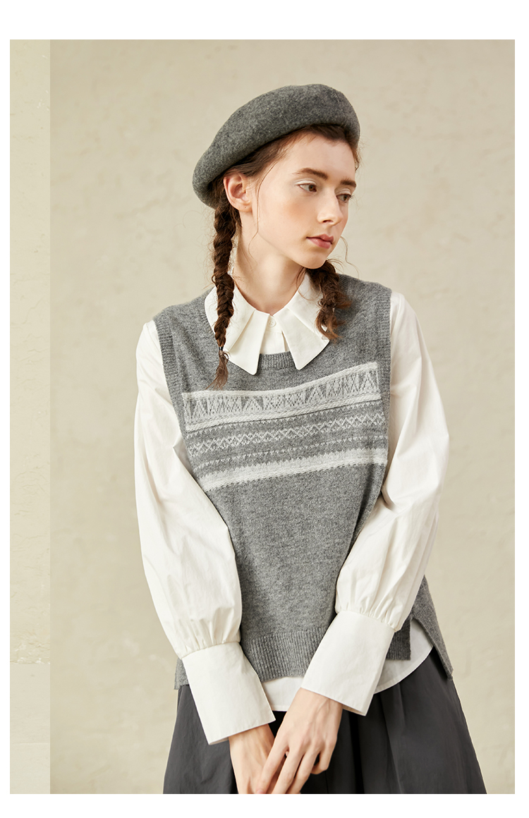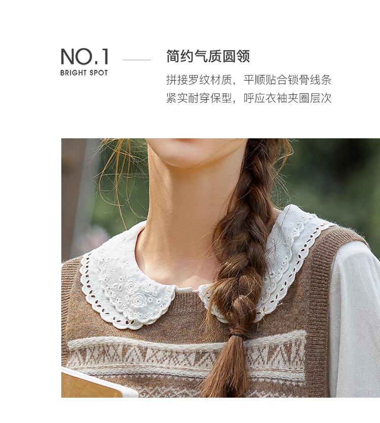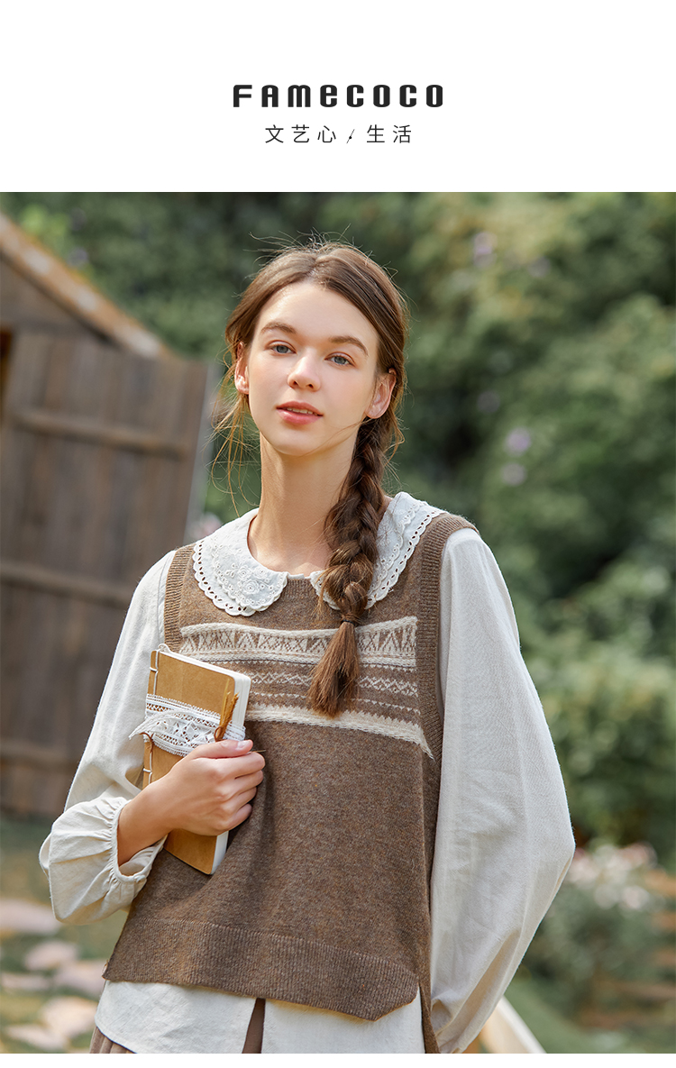 Famecoco范可儿学院风针织马甲女圆领羊毛背心毛衣F221CA009
