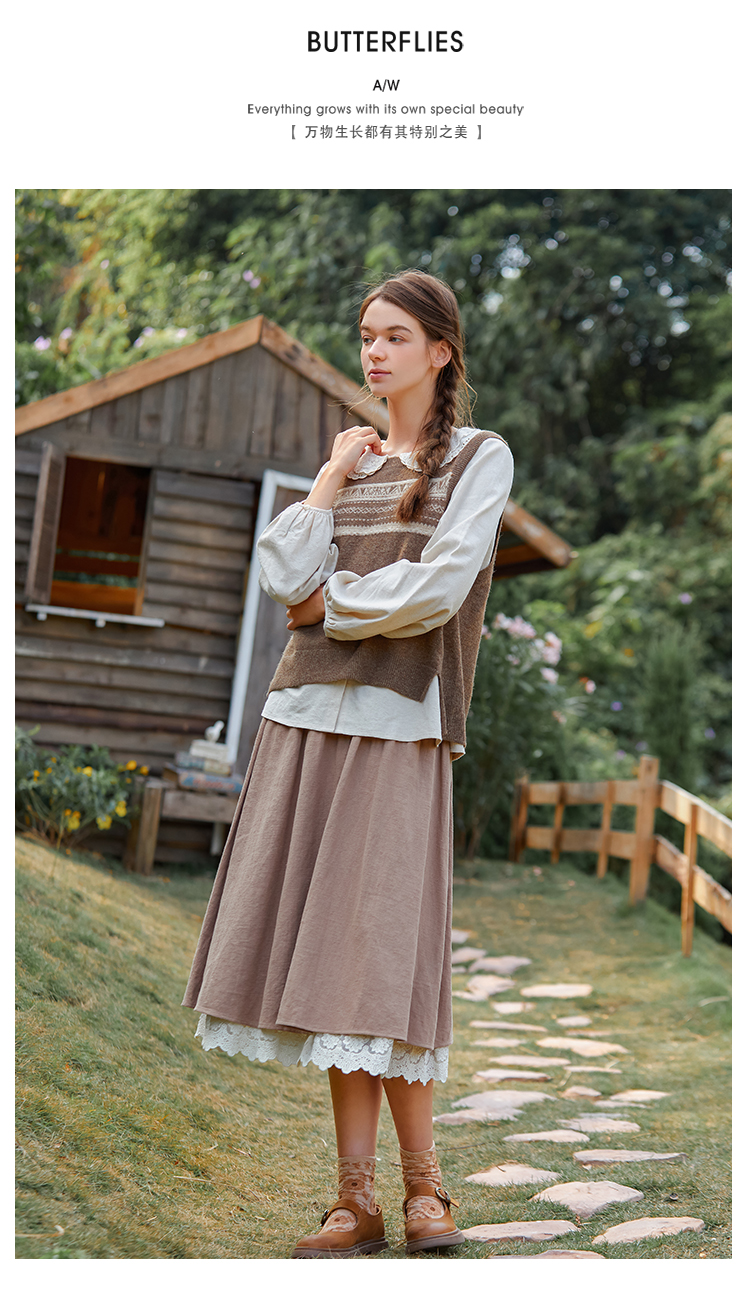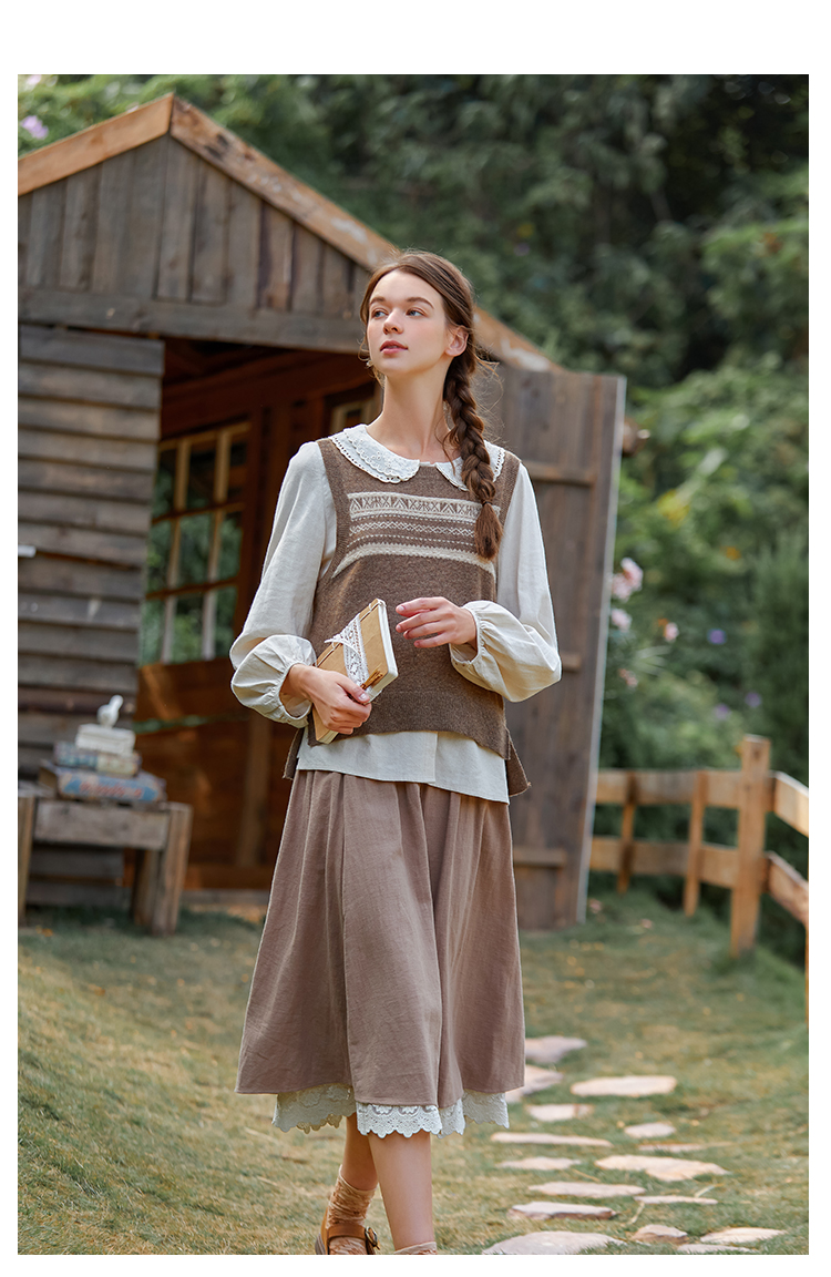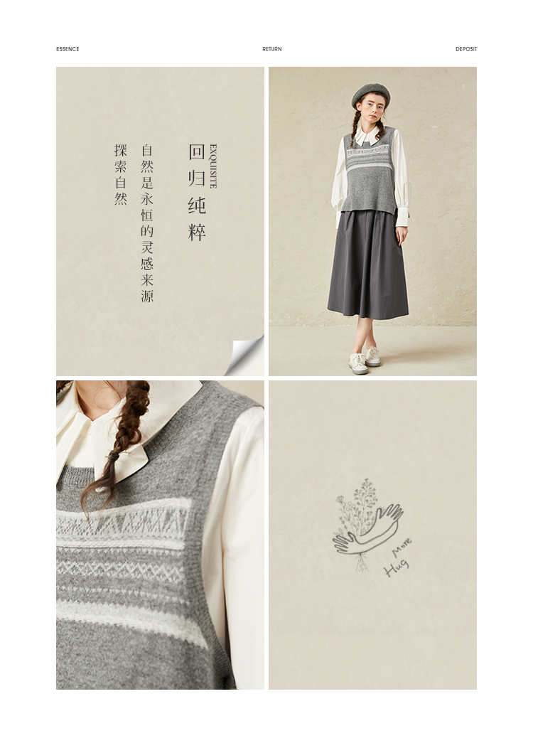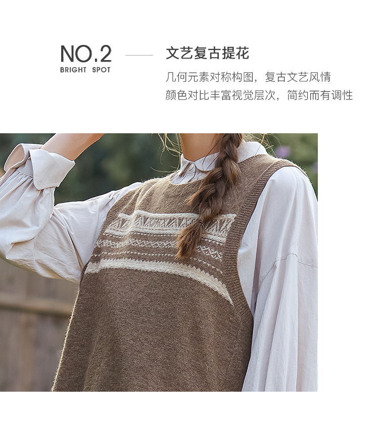 Famecoco范可儿学院风针织马甲女圆领羊毛背心毛衣F221CA009
