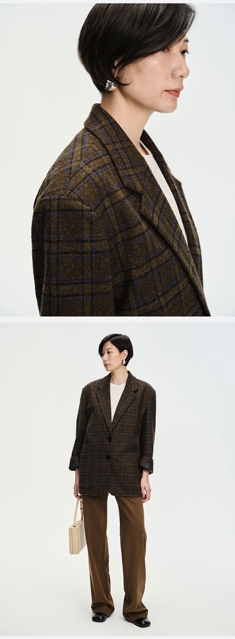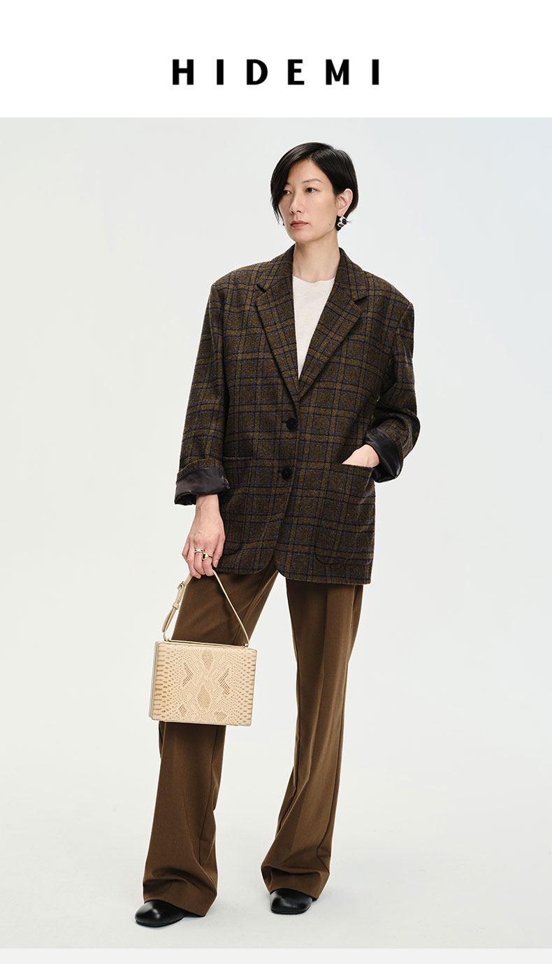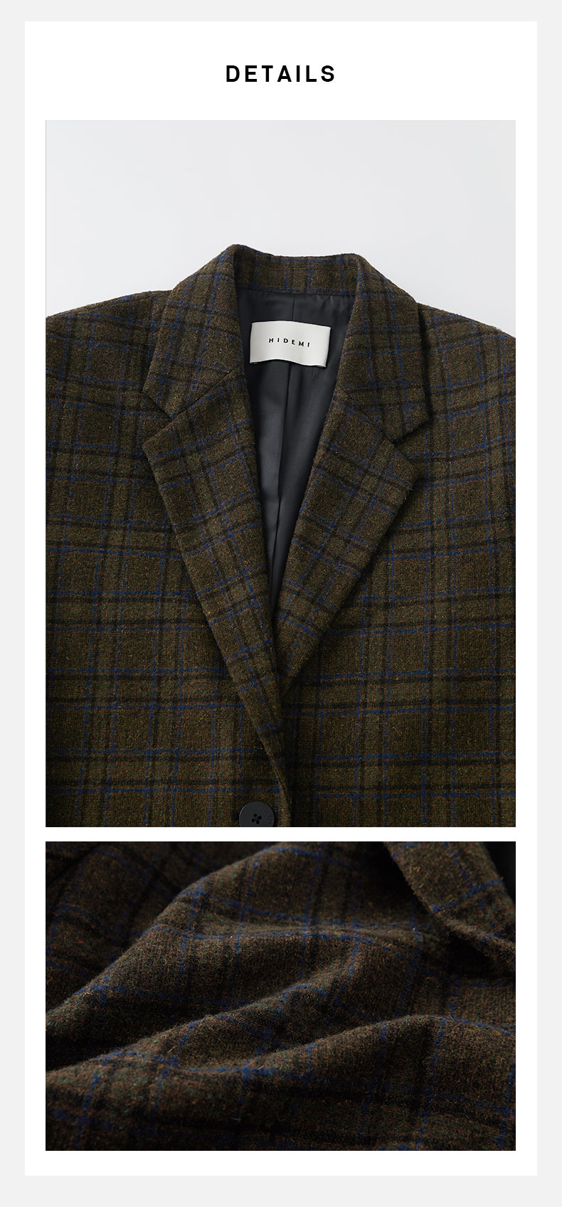 HIDEMI 格纹羊毛廓形极简口袋西装外套