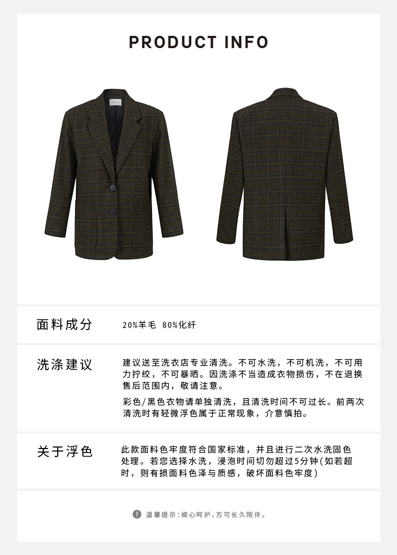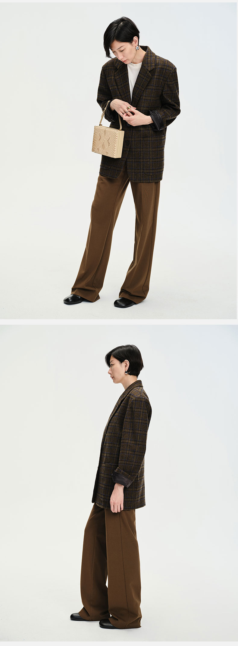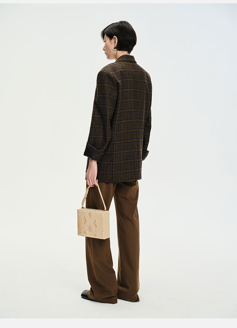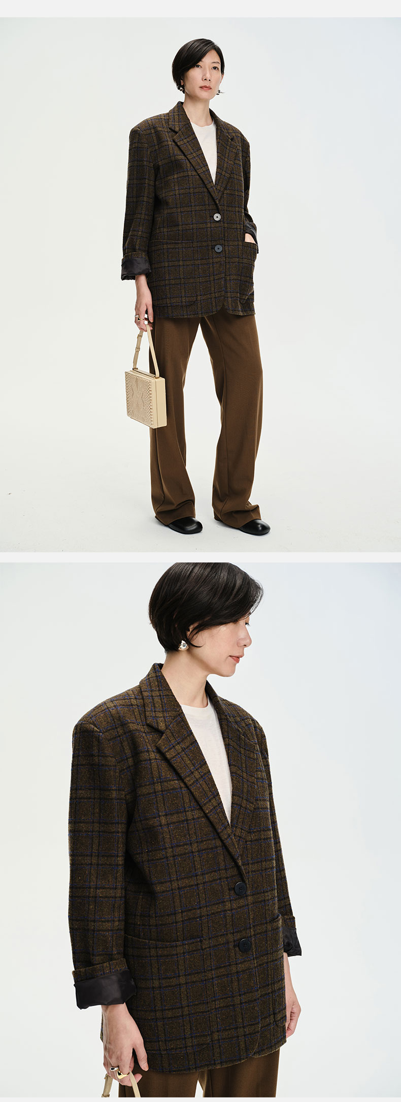 HIDEMI 格纹羊毛廓形极简口袋西装外套