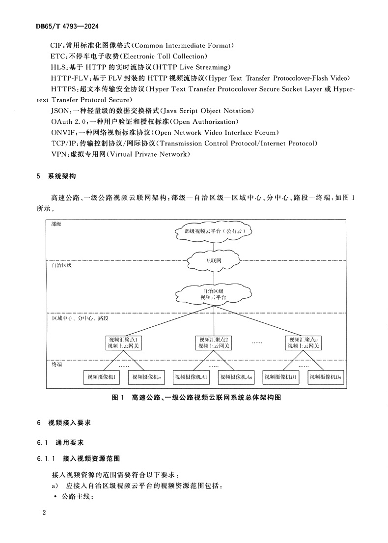 公路视频云联网技术规范(DB65/T 4793—2024)