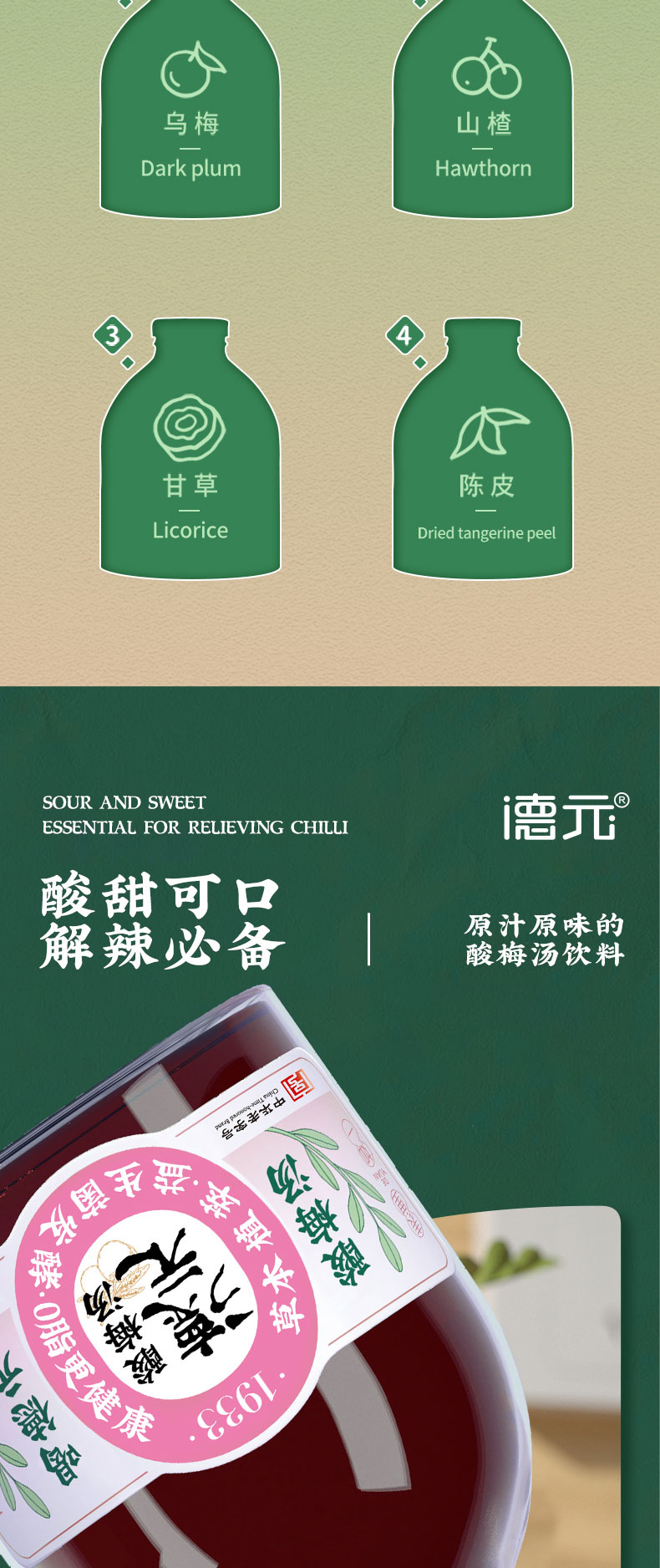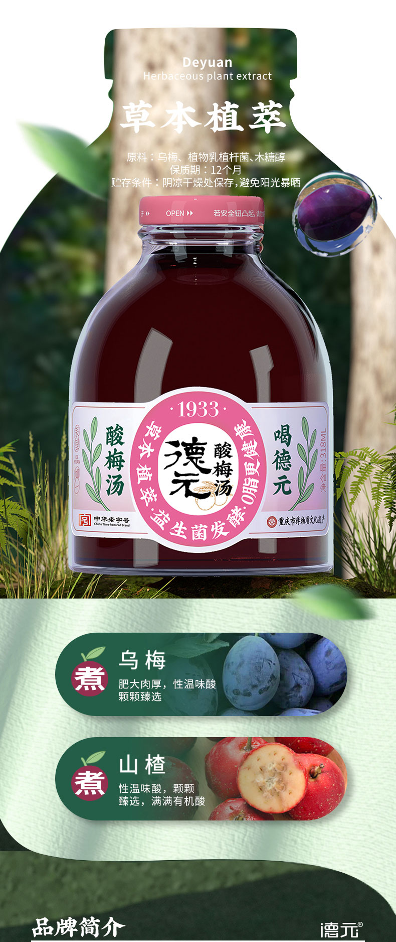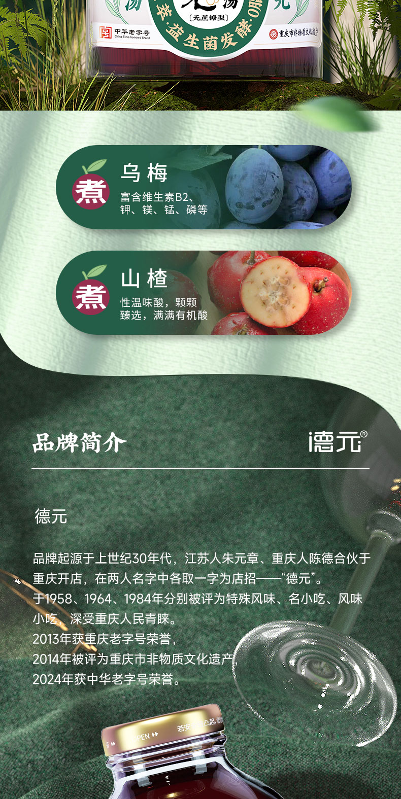 重庆非遗老字·德元益生菌发酵酸梅汤(玻璃瓶) 真熬煮更解腻