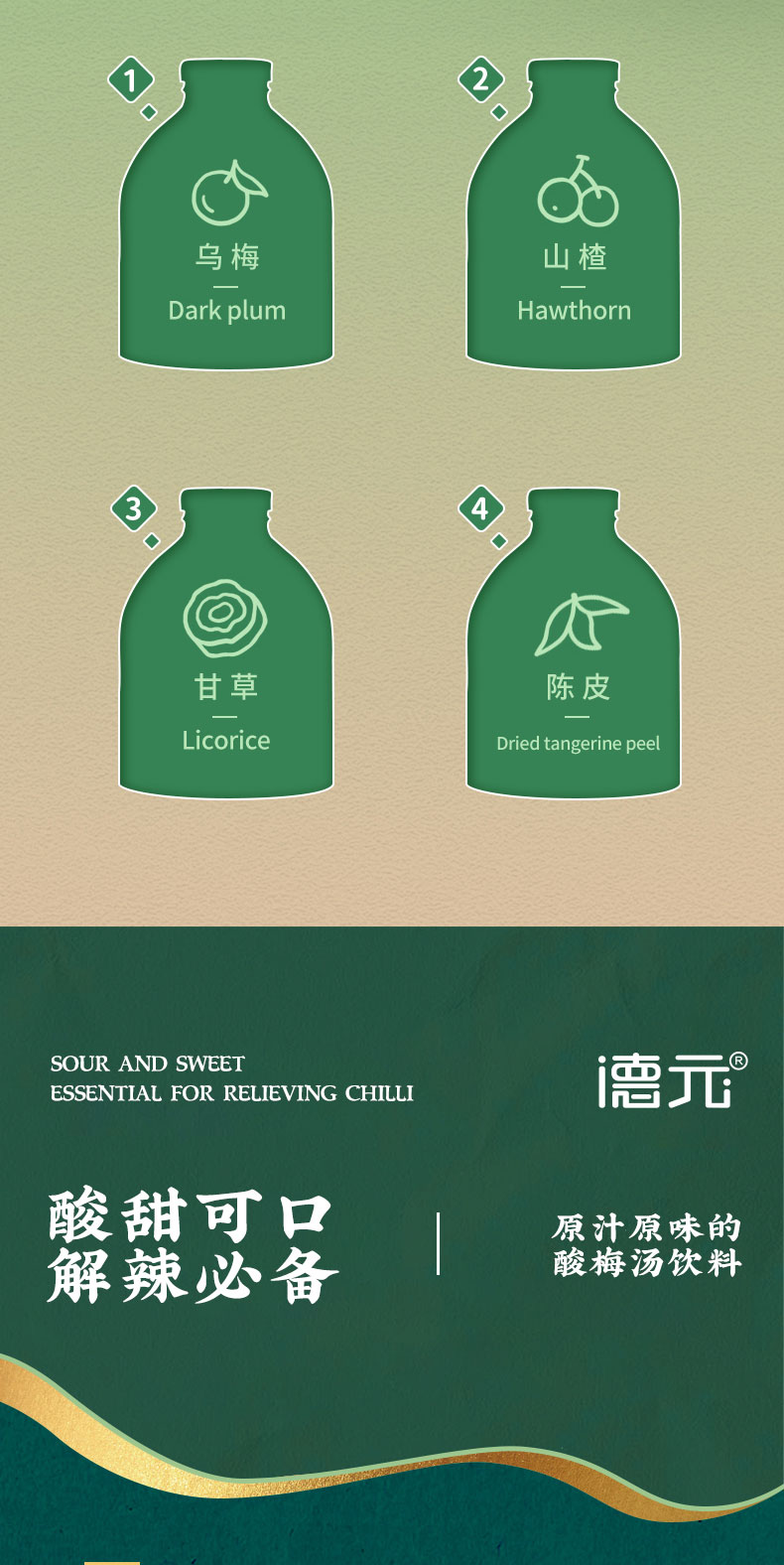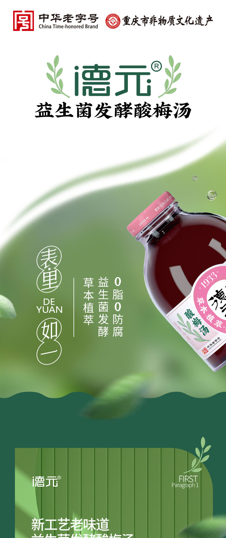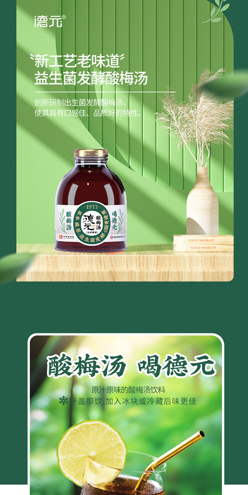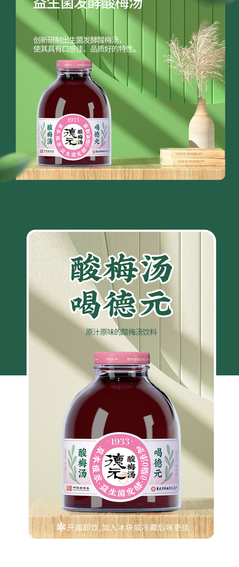 重庆非遗老字·德元益生菌发酵酸梅汤(玻璃瓶) 真熬煮更解腻