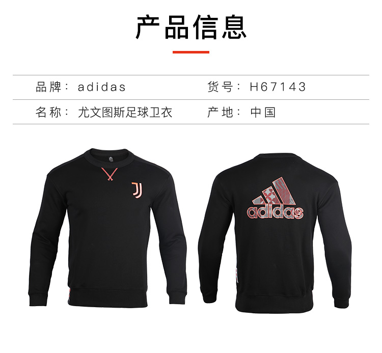 ADIDAS/阿迪达斯尤文图斯足球运动成人长袖套头卫衣男H67143