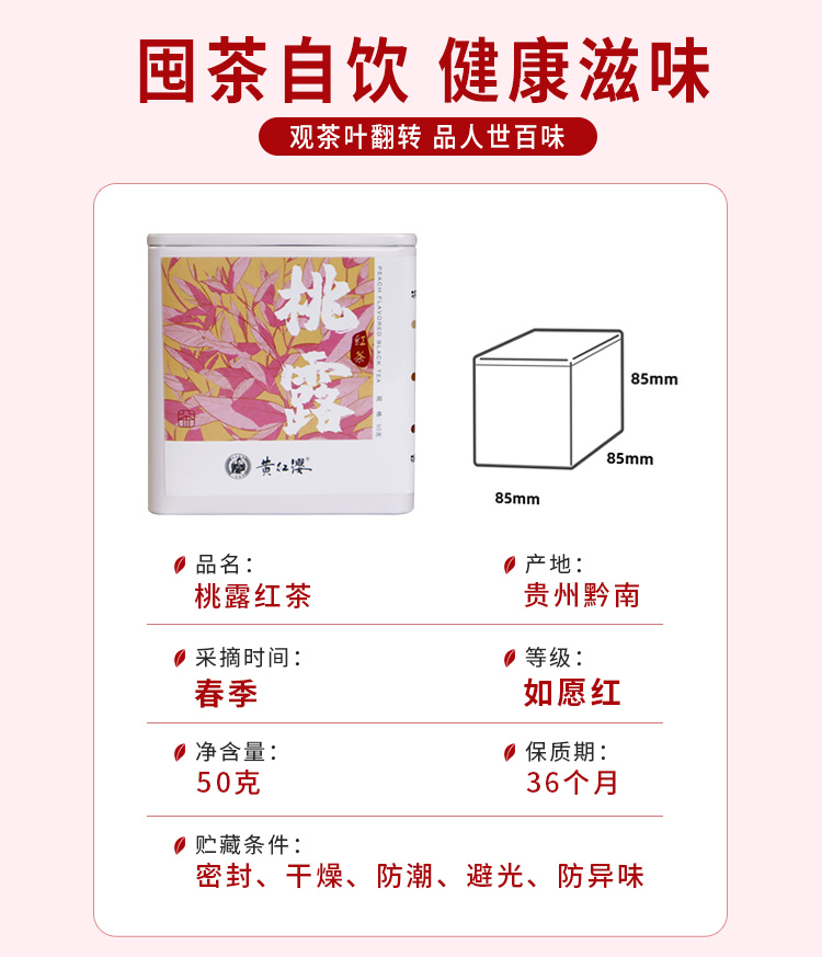 黄红缨初春桃香红茶50g