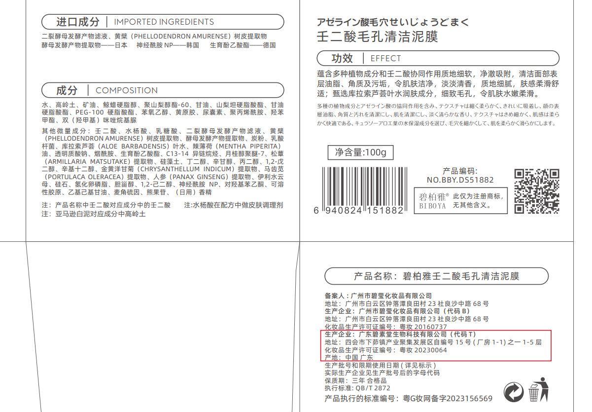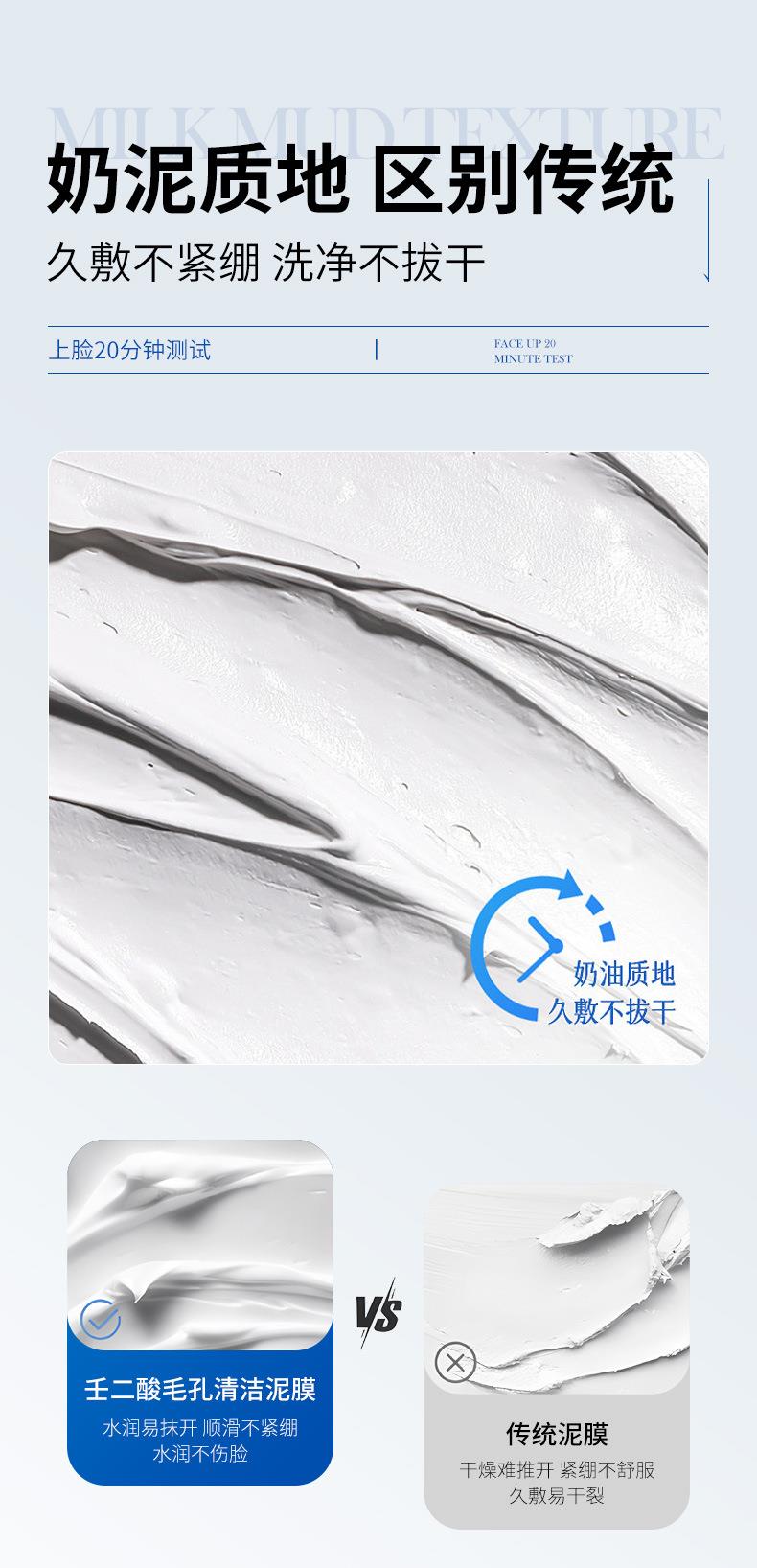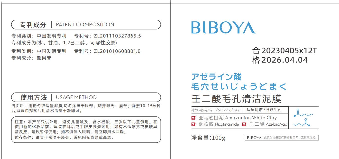 碧柏雅壬二酸毛孔清洁泥膜涂抹水洗护肤式白保湿补水嫩肤面膜膏