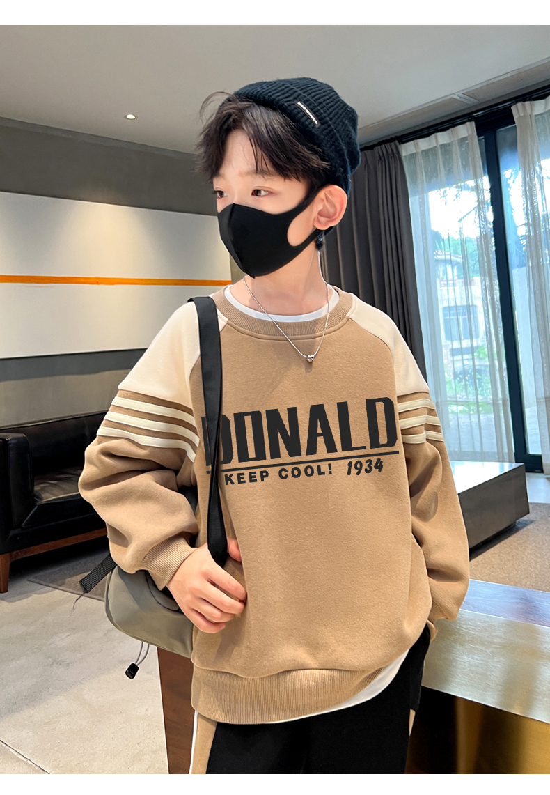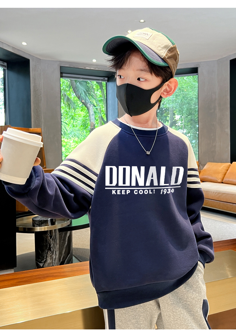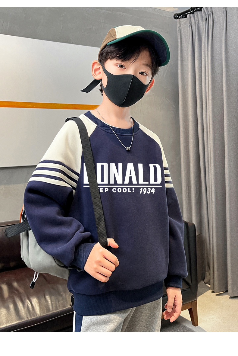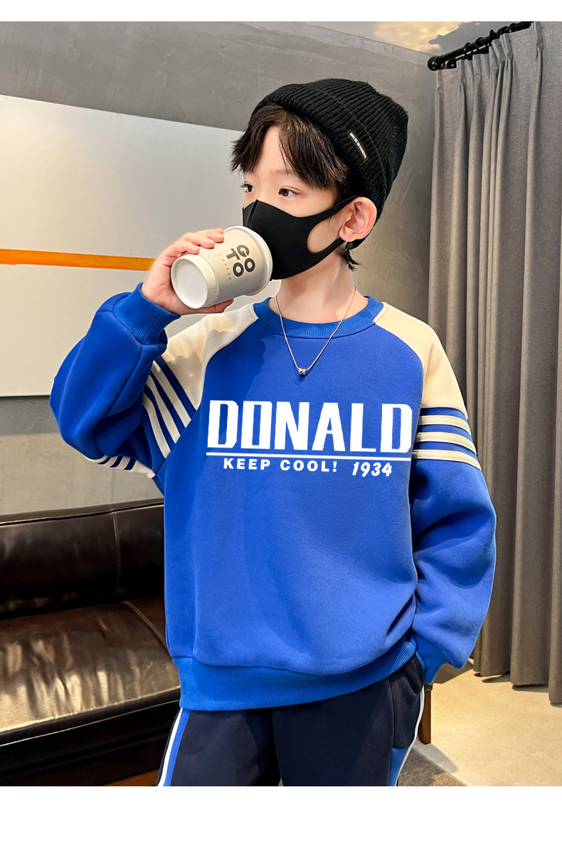 贝田童装男童卫衣加绒加厚冬季儿童帅气炸街男孩2024新款打底衫潮
