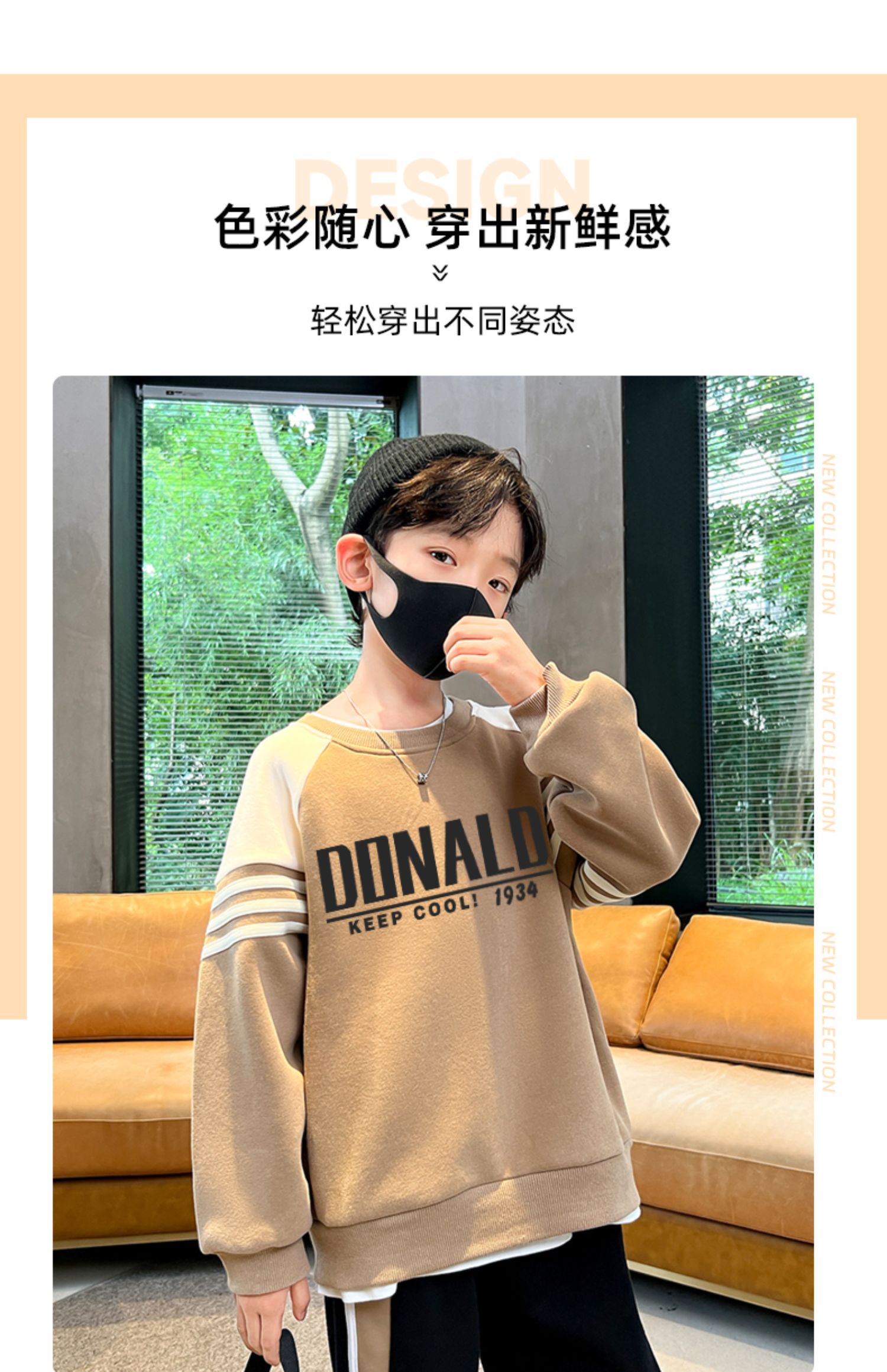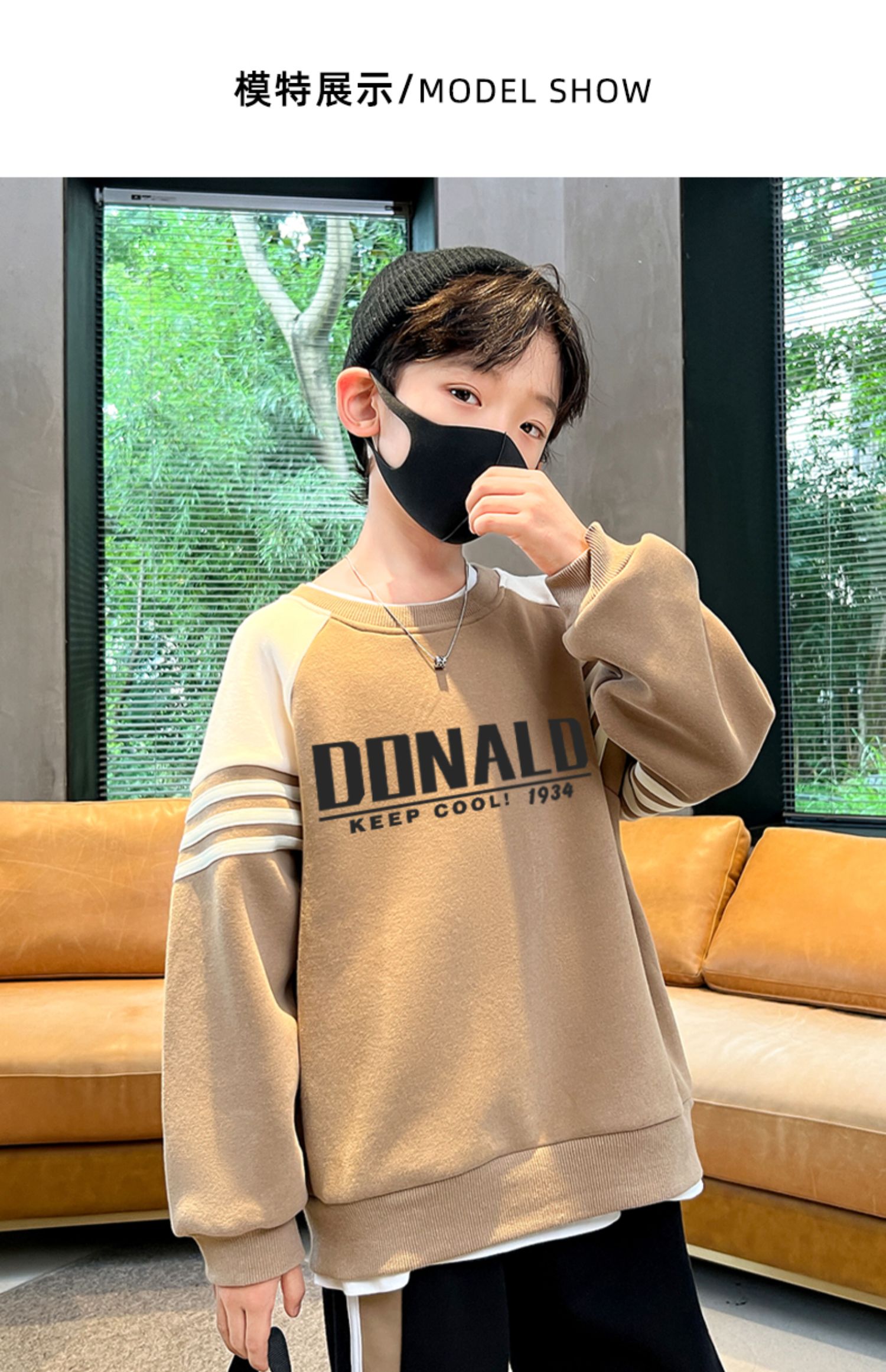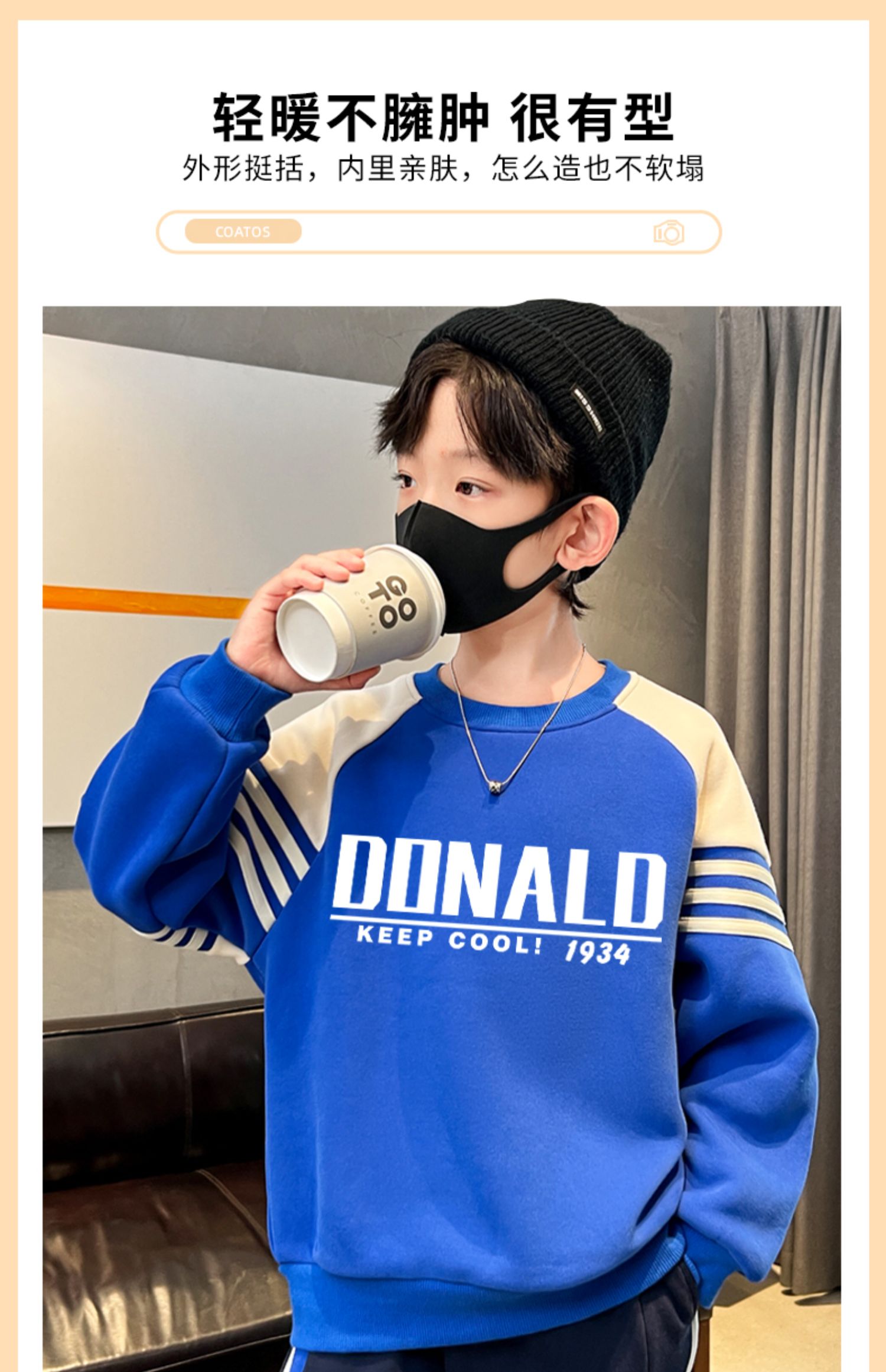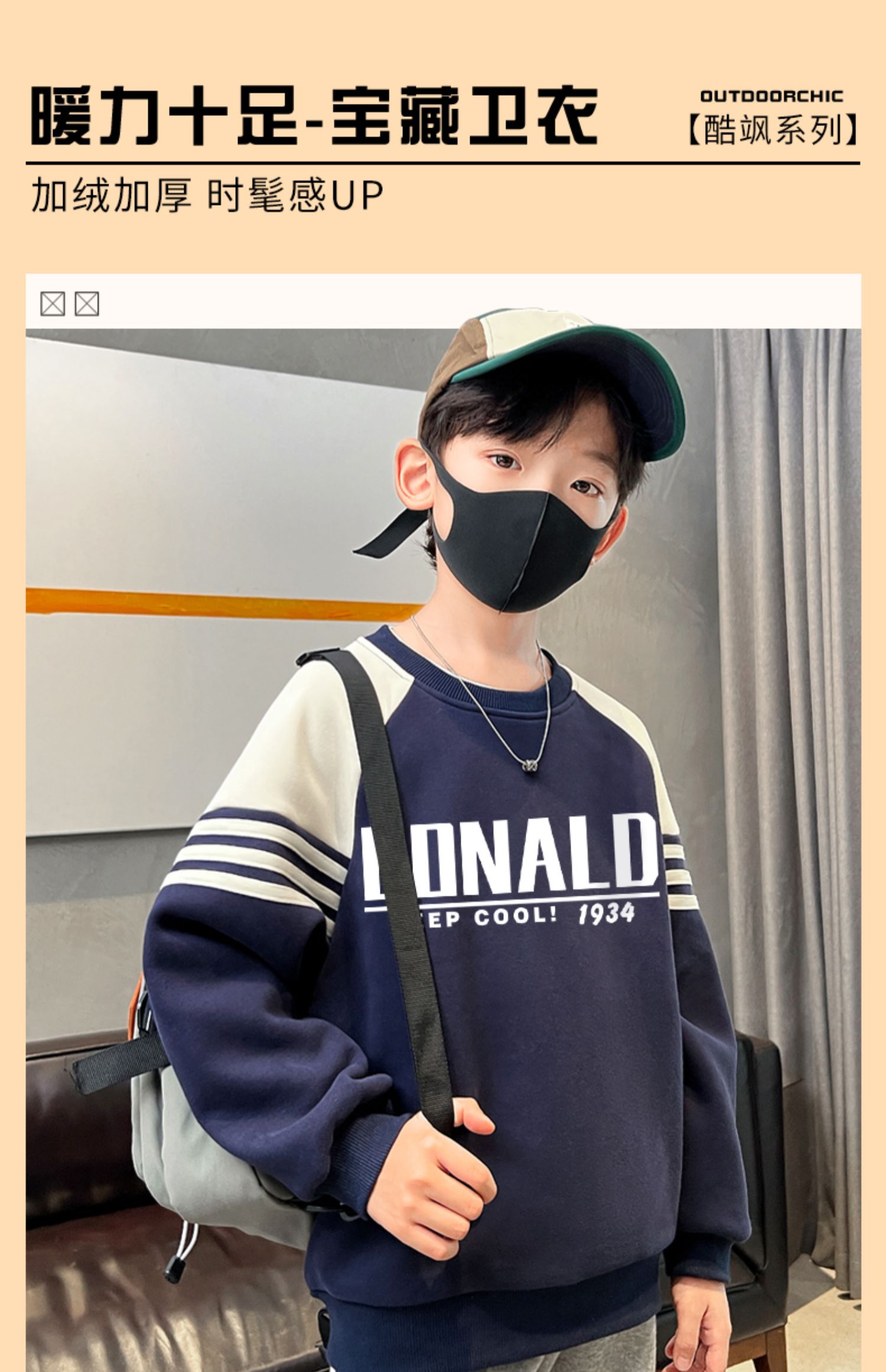 贝田童装男童卫衣加绒加厚冬季儿童帅气炸街男孩2024新款打底衫潮